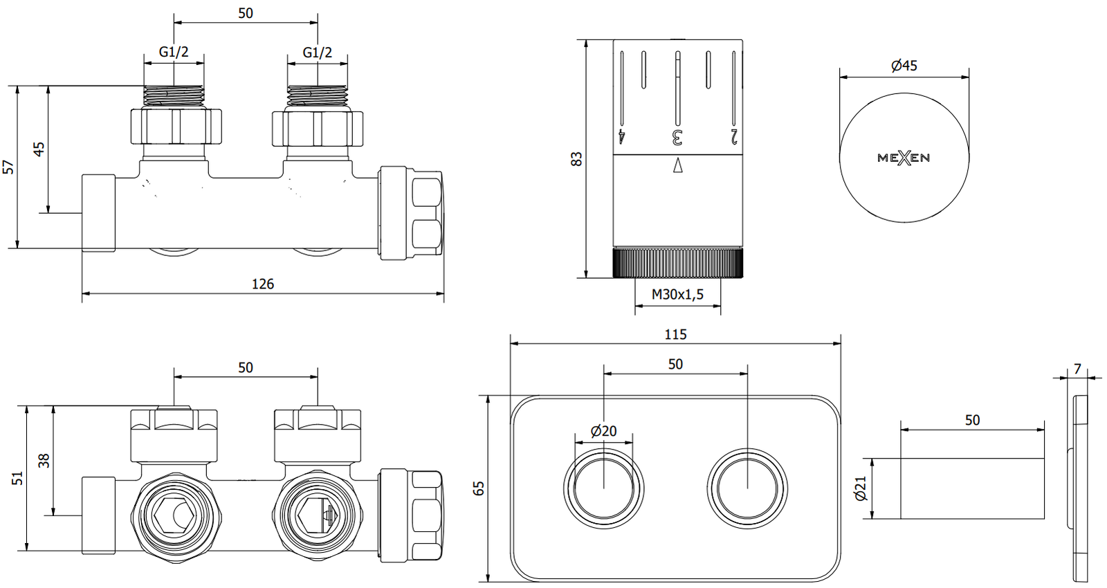 Vožtuvo jungties skersmuo: G 1/2"