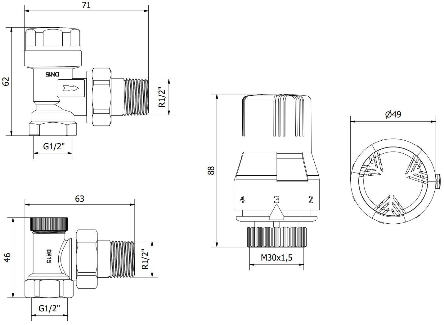 Galvutės sriegis: M30 x 1,5 mm