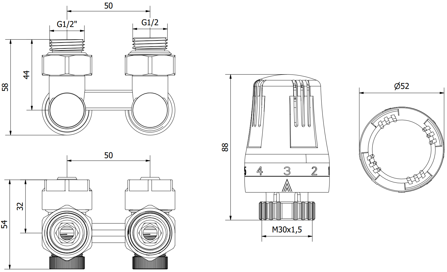 Radiatoriaus tiekimo ir uždarymo vožtuvas