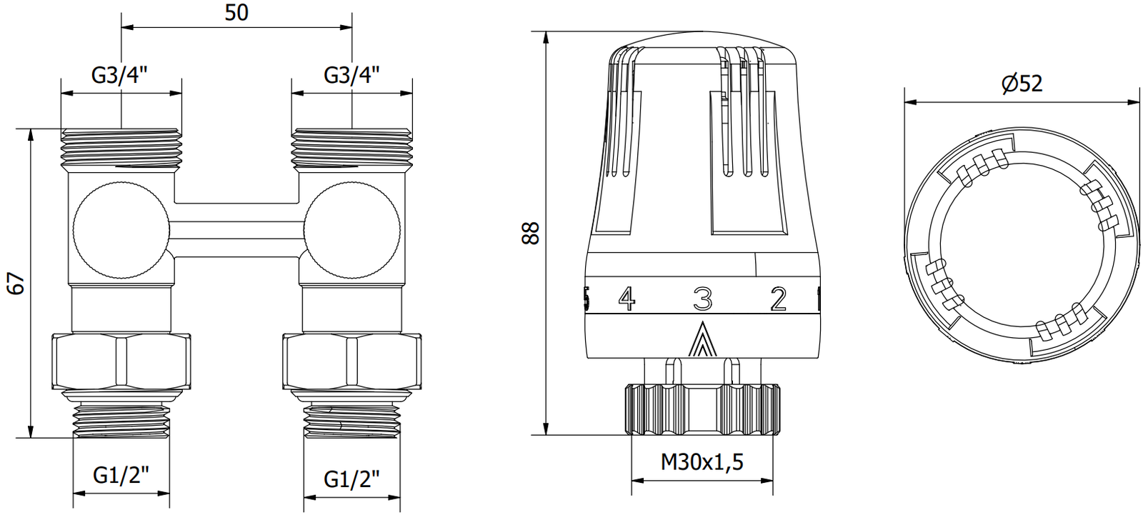 Vožtuvo jungties skersmuo: G 1/2" ir G 3/4"