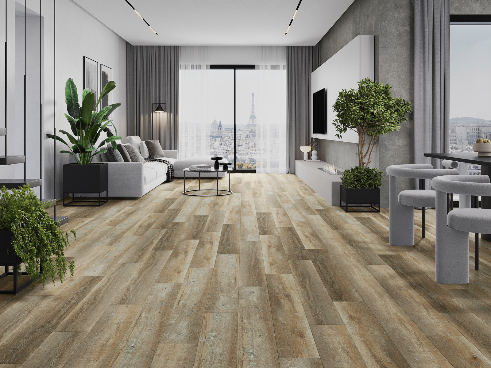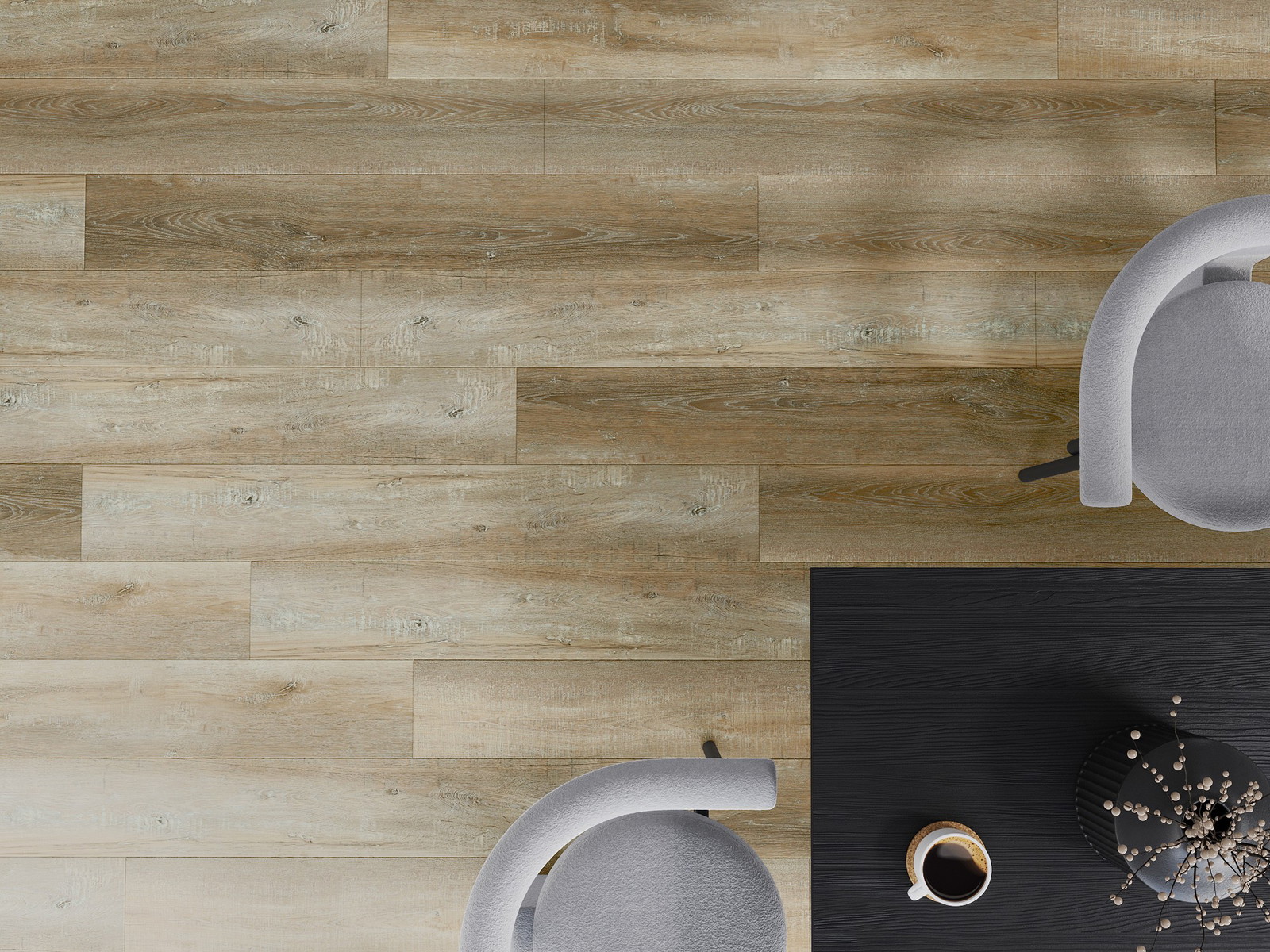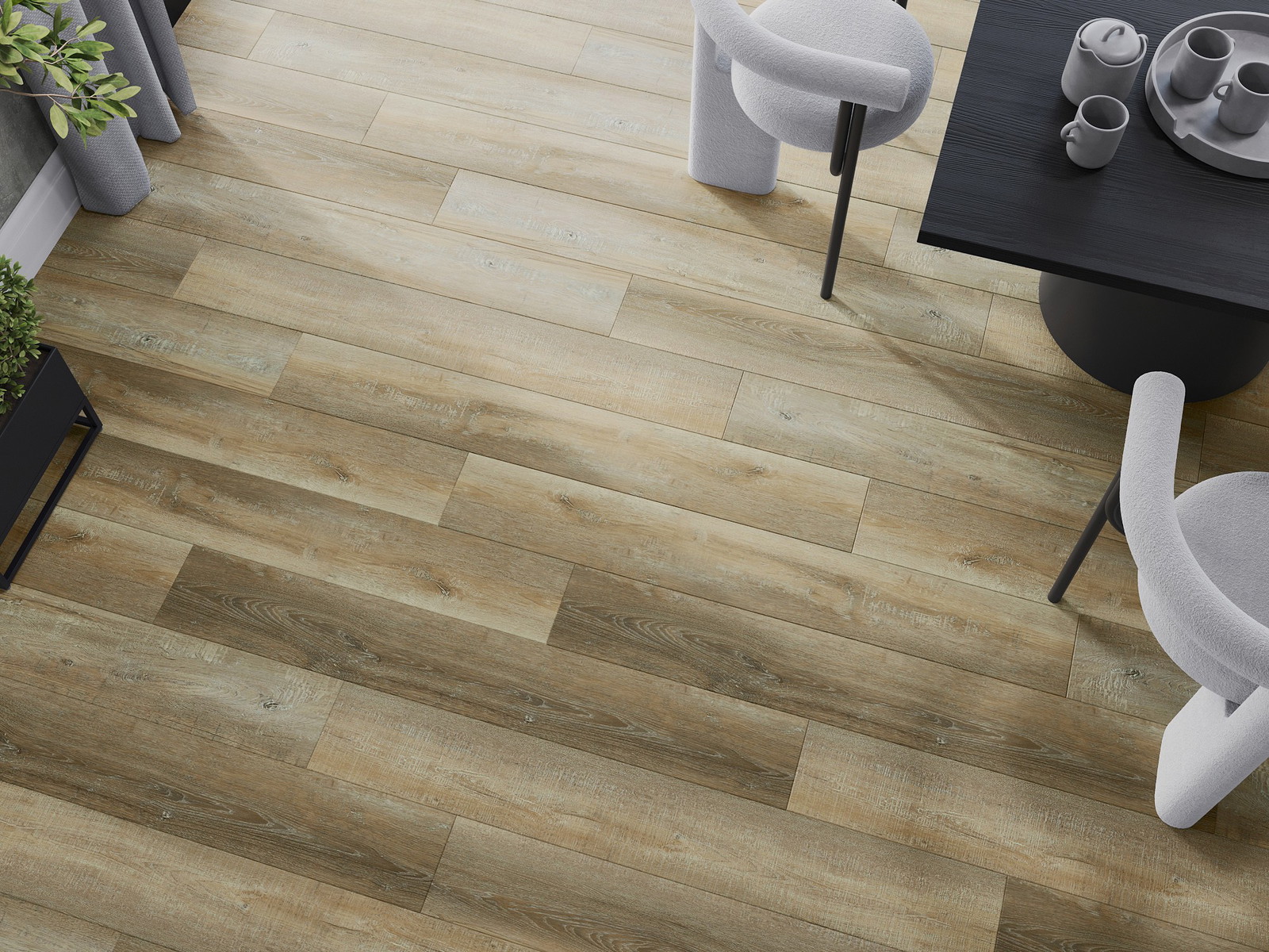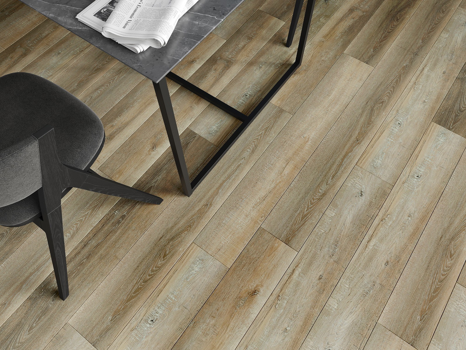 Plokštės turi 4-krypčių griovelį - kiekviena pusė buvo frezuota taip, kad sudarytų V formos jungtį. Toks dizainas suteikia grindims ryškesnę struktūrą, kas suteikia jai gylio ir estetinį charakterį. Šis efektas ypač vertinamas šiuolaikinėse aranžuotėse, kur detalės pabrėžia išskirtinę interjero išvaizdą.