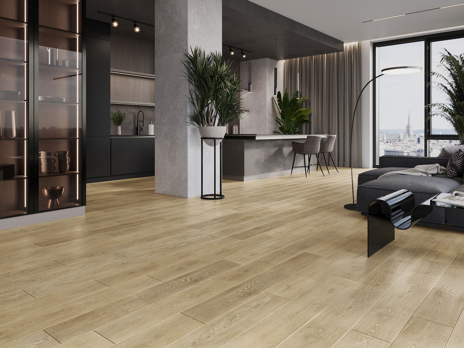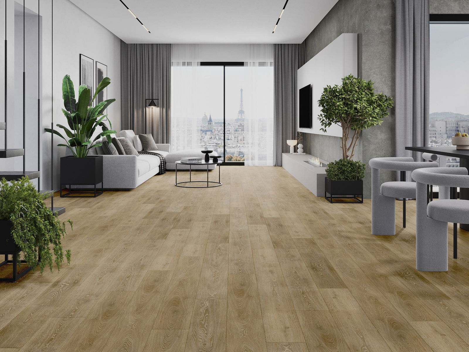 Skydas išsiskiria subtiliais raštais ir įspaudais, kurie puikiai imituoja pasirinktos medienos rūšį. Dėl šio efekto patalpa įgyja elegantišką, o tuo pačiu natūralų ir jaukų pobūdį.