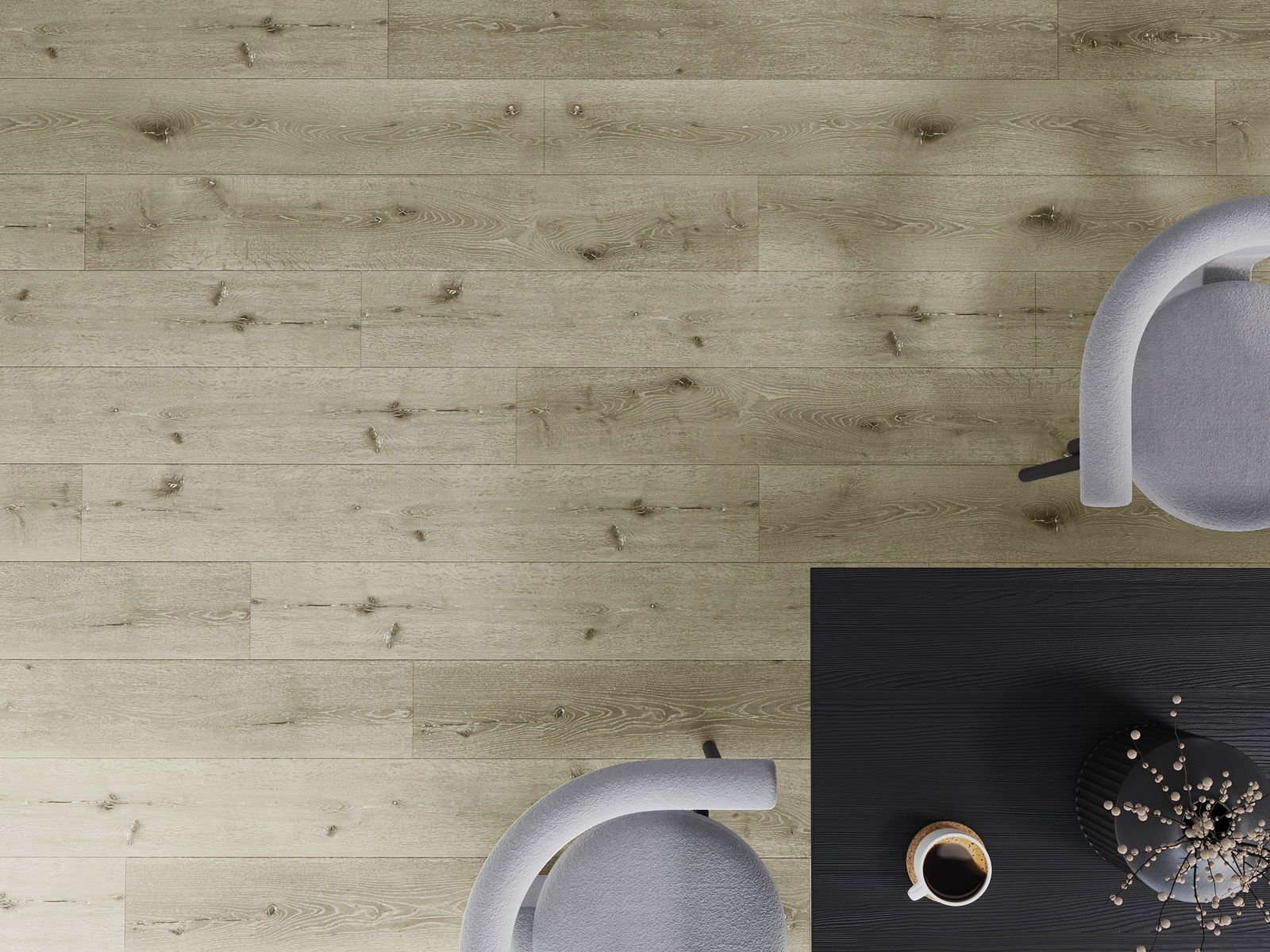 Skydas išsiskiria subtiliais raštais ir įspaudais, kurie puikiai imituoja pasirinktos medienos rūšį. Dėl šio efekto patalpa įgyja elegantišką, o tuo pačiu natūralų ir jaukų pobūdį.