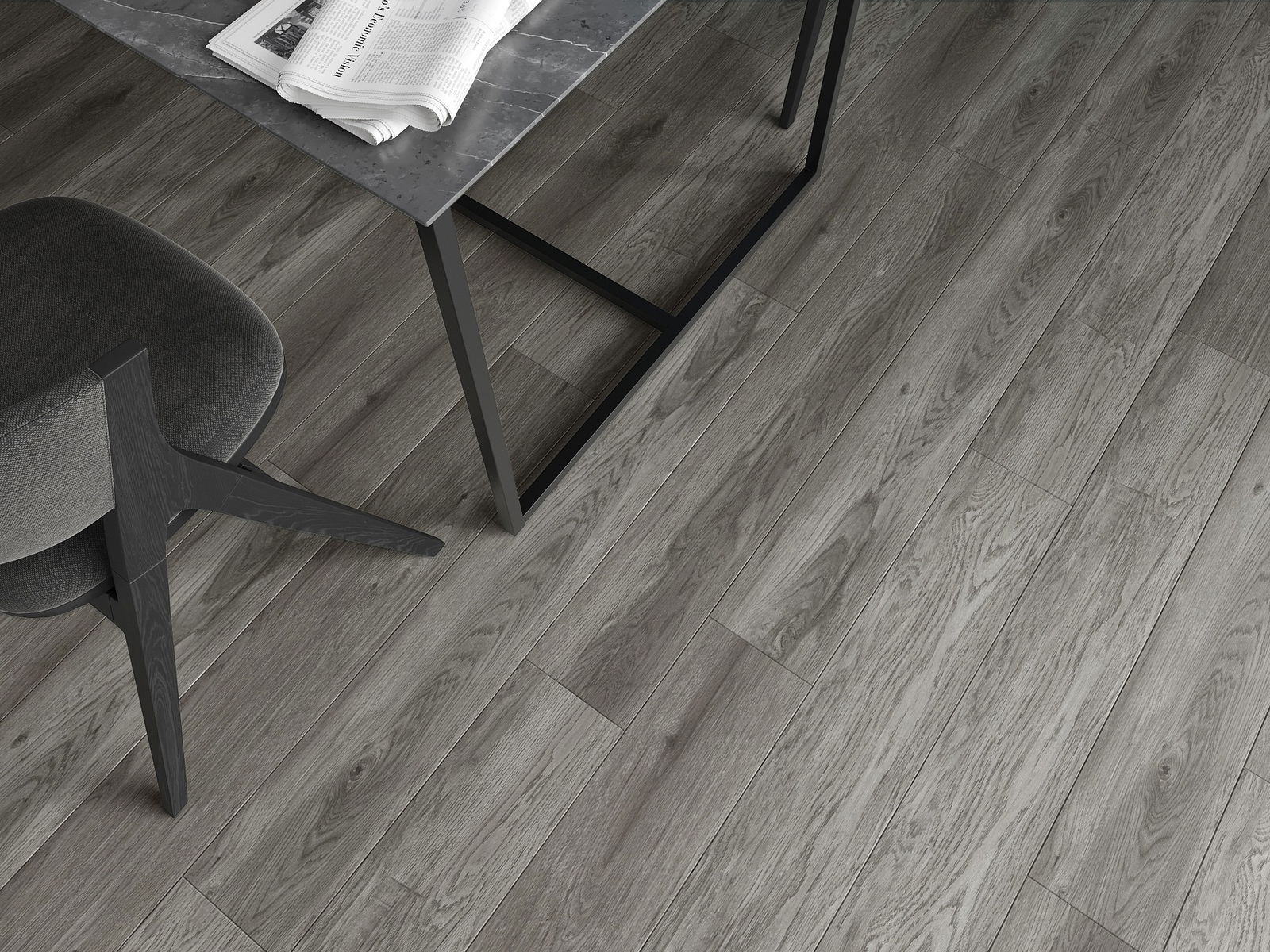 Plokštės turi 4-krypčių griovelį - kiekviena pusė buvo frezuota taip, kad sudarytų V formos jungtį. Toks dizainas suteikia grindims ryškesnę struktūrą, kas suteikia jai gylio ir estetinį charakterį. Šis efektas ypač vertinamas šiuolaikinėse aranžuotėse, kur detalės pabrėžia išskirtinę interjero išvaizdą.