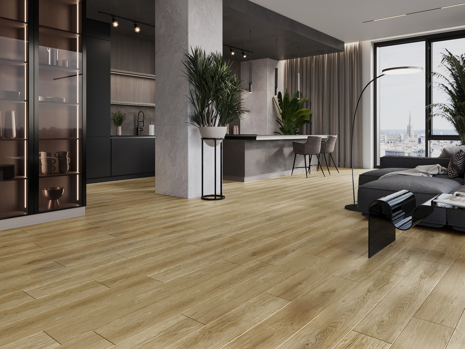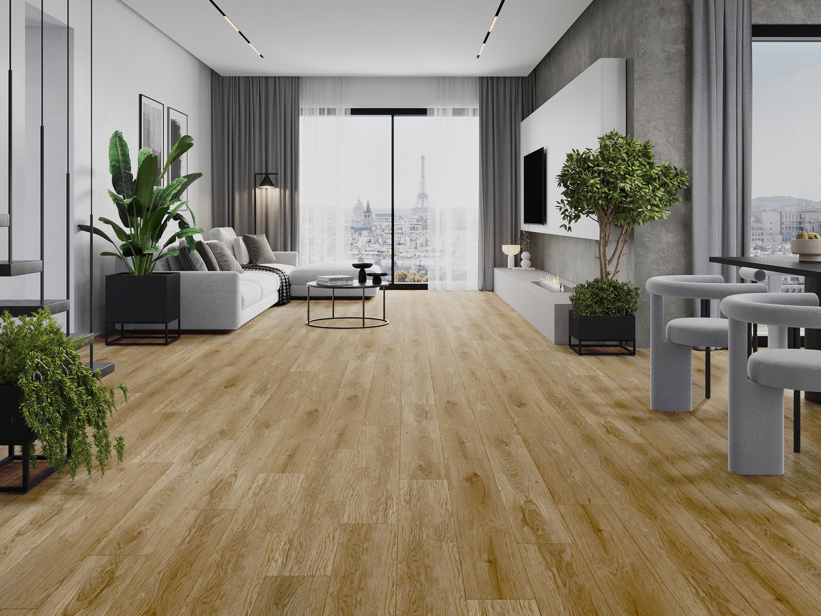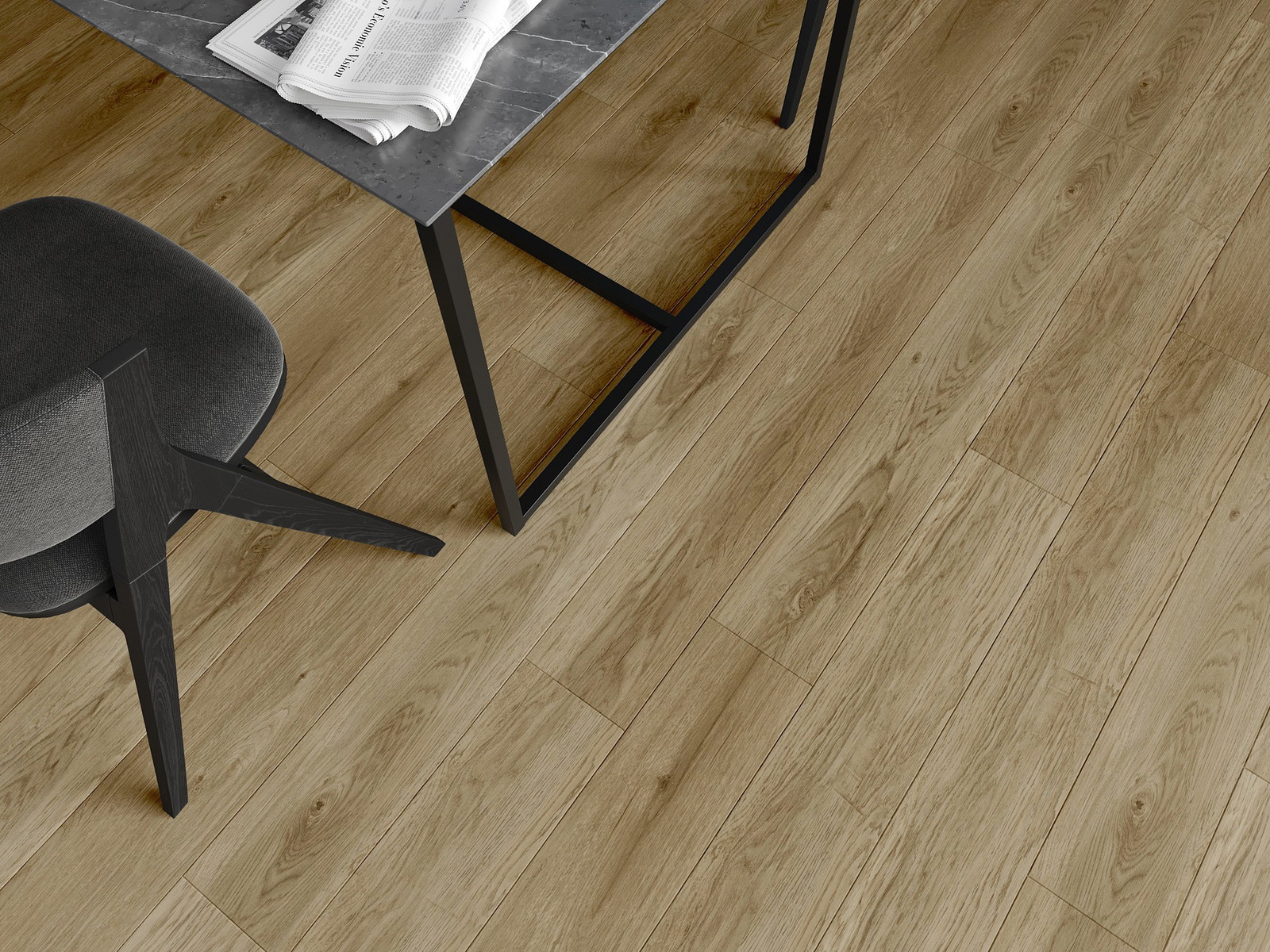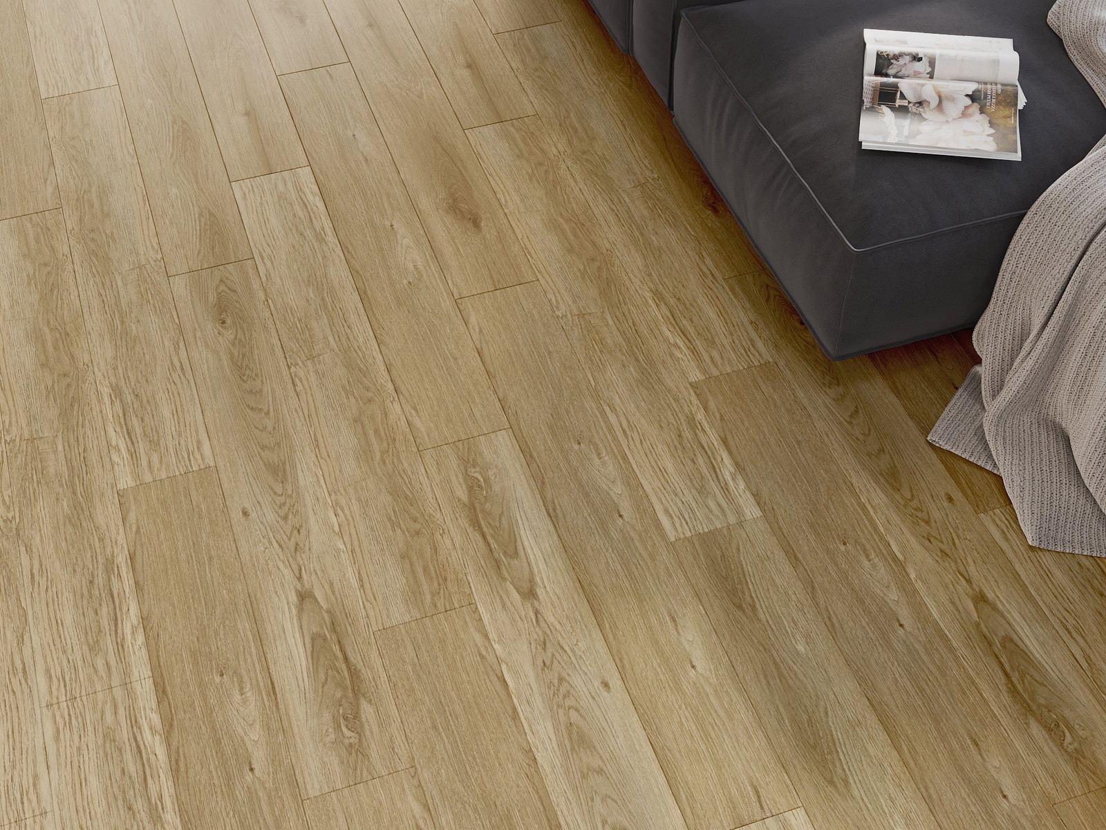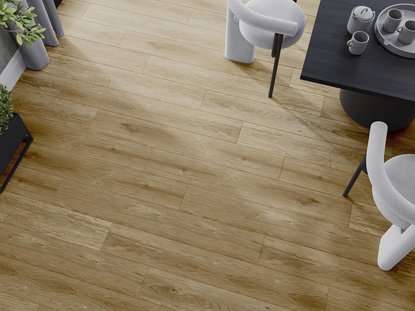 Skydas išsiskiria subtiliais raštais ir įspaudais, kurie puikiai imituoja pasirinktos medienos rūšį. Dėl šio efekto patalpa įgyja elegantišką, o tuo pačiu natūralų ir jaukų pobūdį.