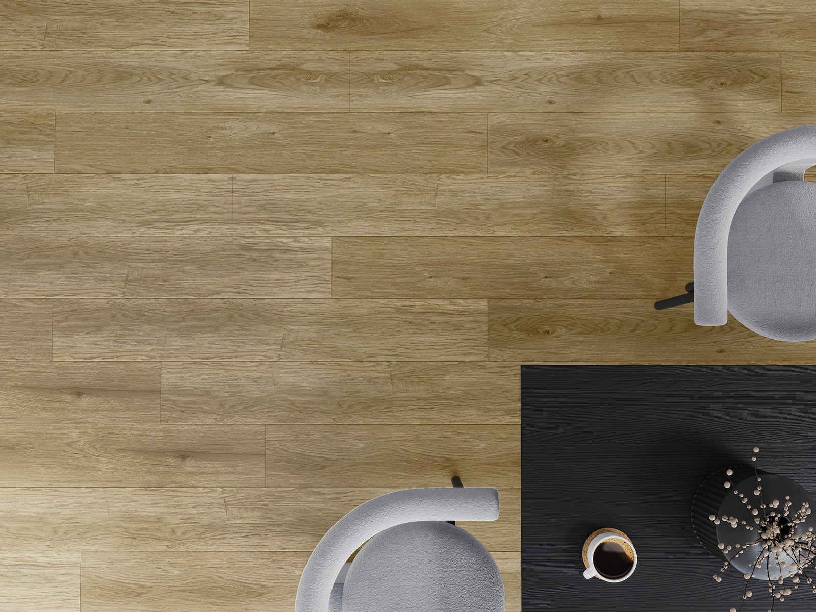 Plokštės turi 4-krypčių griovelį - kiekviena pusė buvo frezuota taip, kad sudarytų V formos jungtį. Toks dizainas suteikia grindims ryškesnę struktūrą, kas suteikia jai gylio ir estetinį charakterį. Šis efektas ypač vertinamas šiuolaikinėse aranžuotėse, kur detalės pabrėžia išskirtinę interjero išvaizdą.