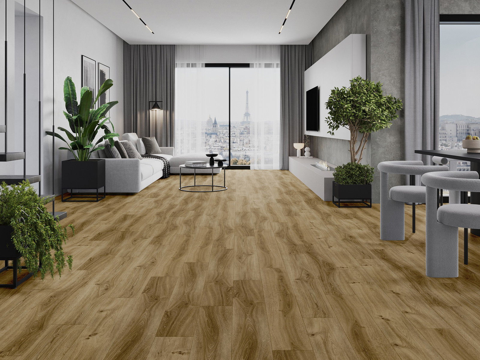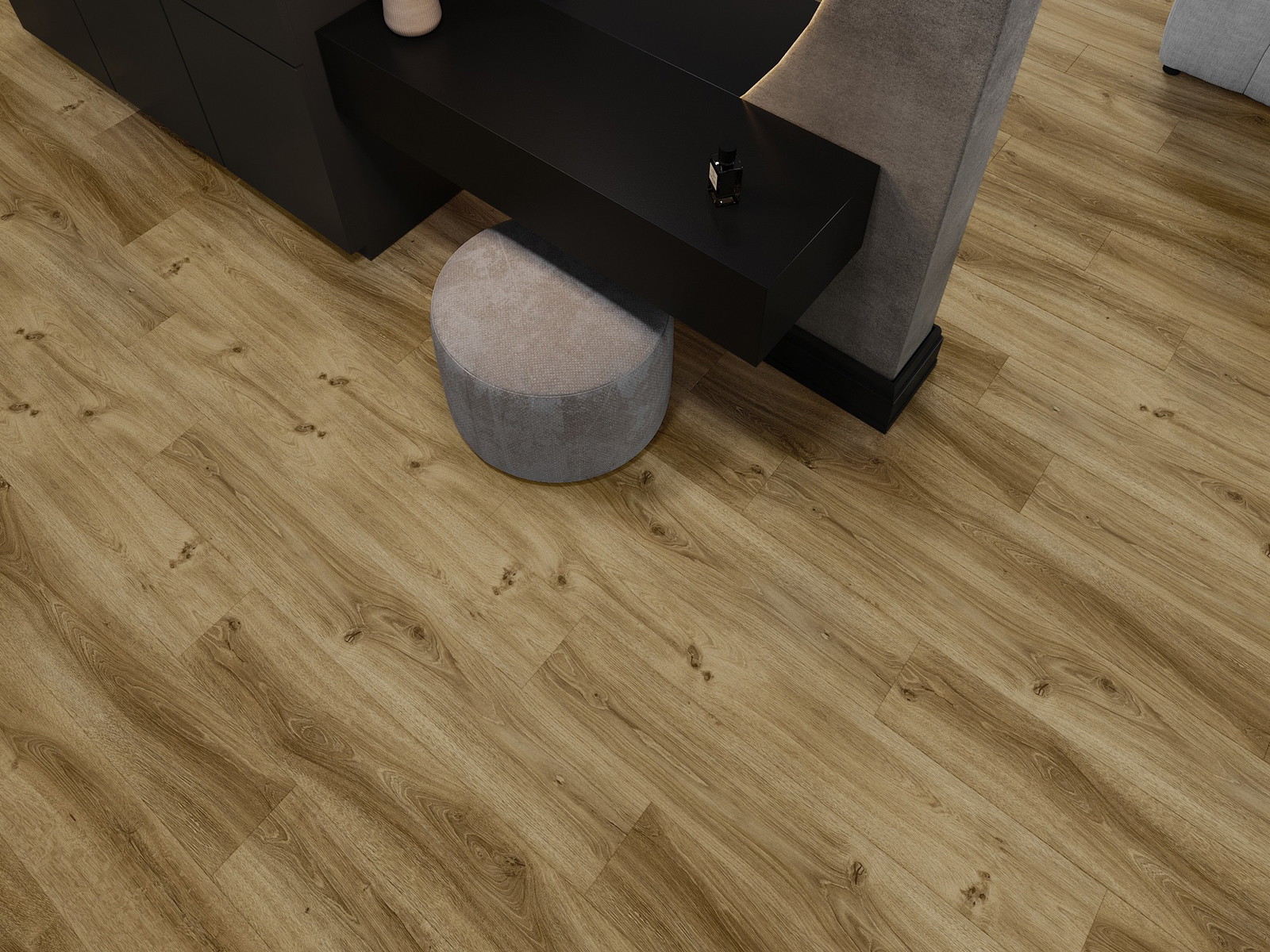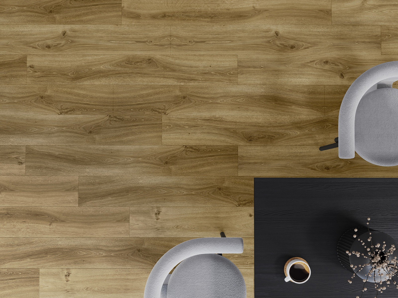 Plokštės turi 4-krypčių griovelį - kiekviena pusė buvo frezuota taip, kad sudarytų V formos jungtį. Toks dizainas suteikia grindims ryškesnę struktūrą, kas suteikia jai gylio ir estetinį charakterį. Šis efektas ypač vertinamas šiuolaikinėse aranžuotėse, kur detalės pabrėžia išskirtinę interjero išvaizdą.