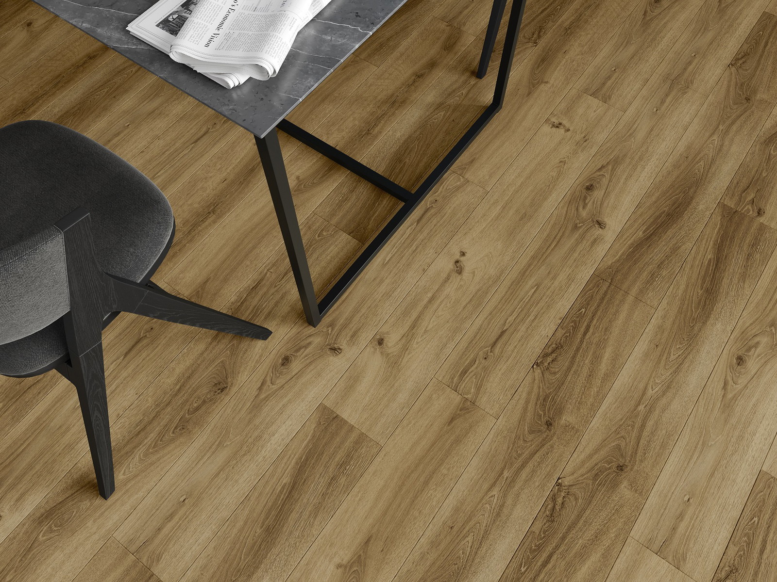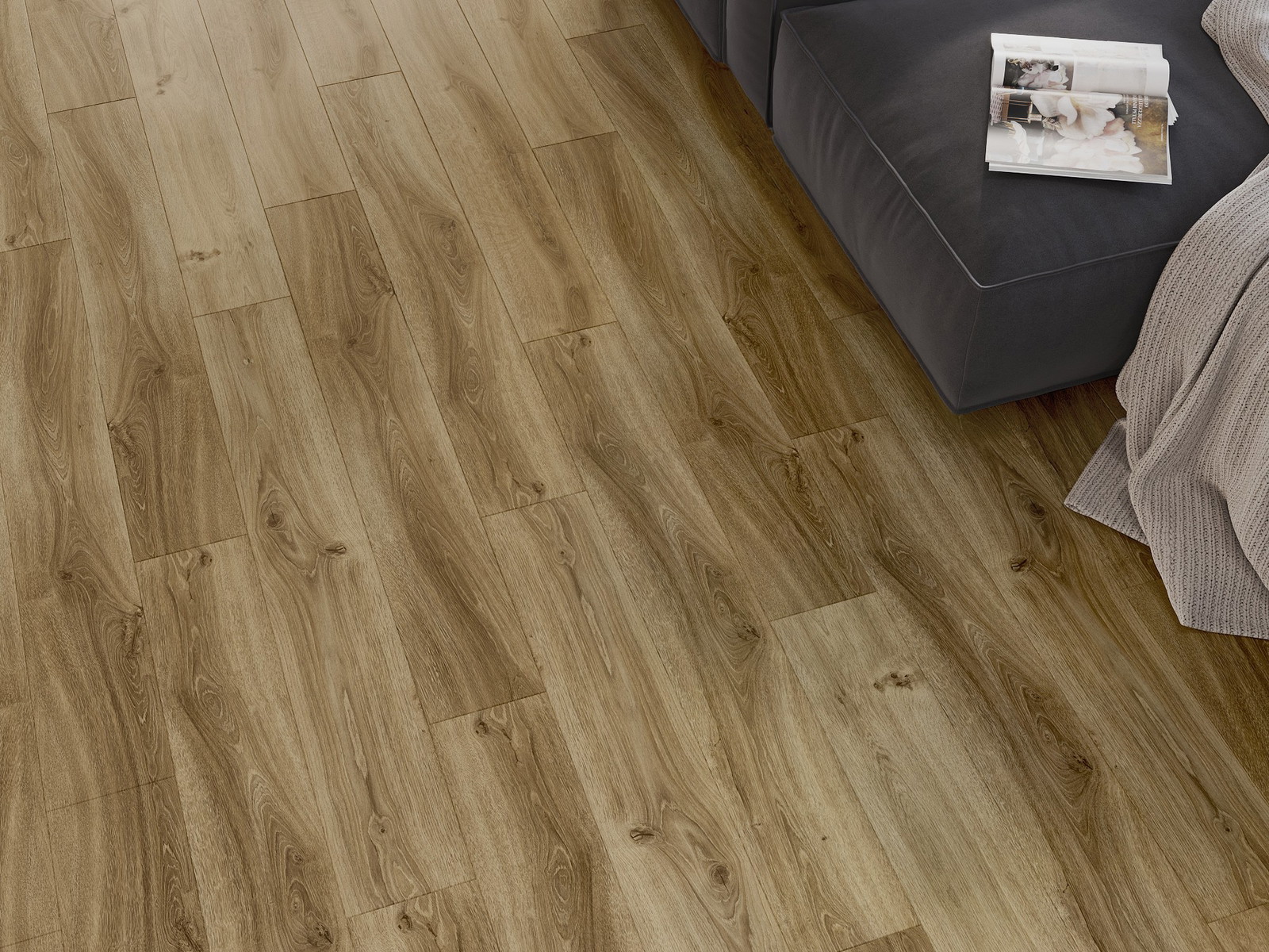 Skydas išsiskiria subtiliais raštais ir įspaudais, kurie puikiai imituoja pasirinktos medienos rūšį. Dėl šio efekto patalpa įgyja elegantišką, o tuo pačiu natūralų ir jaukų pobūdį.