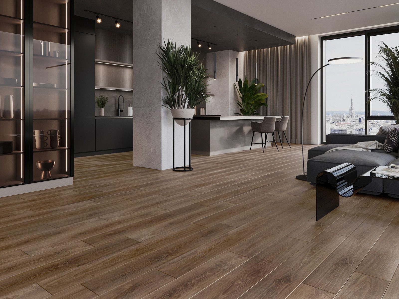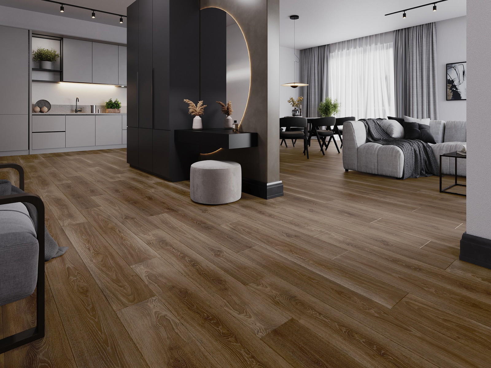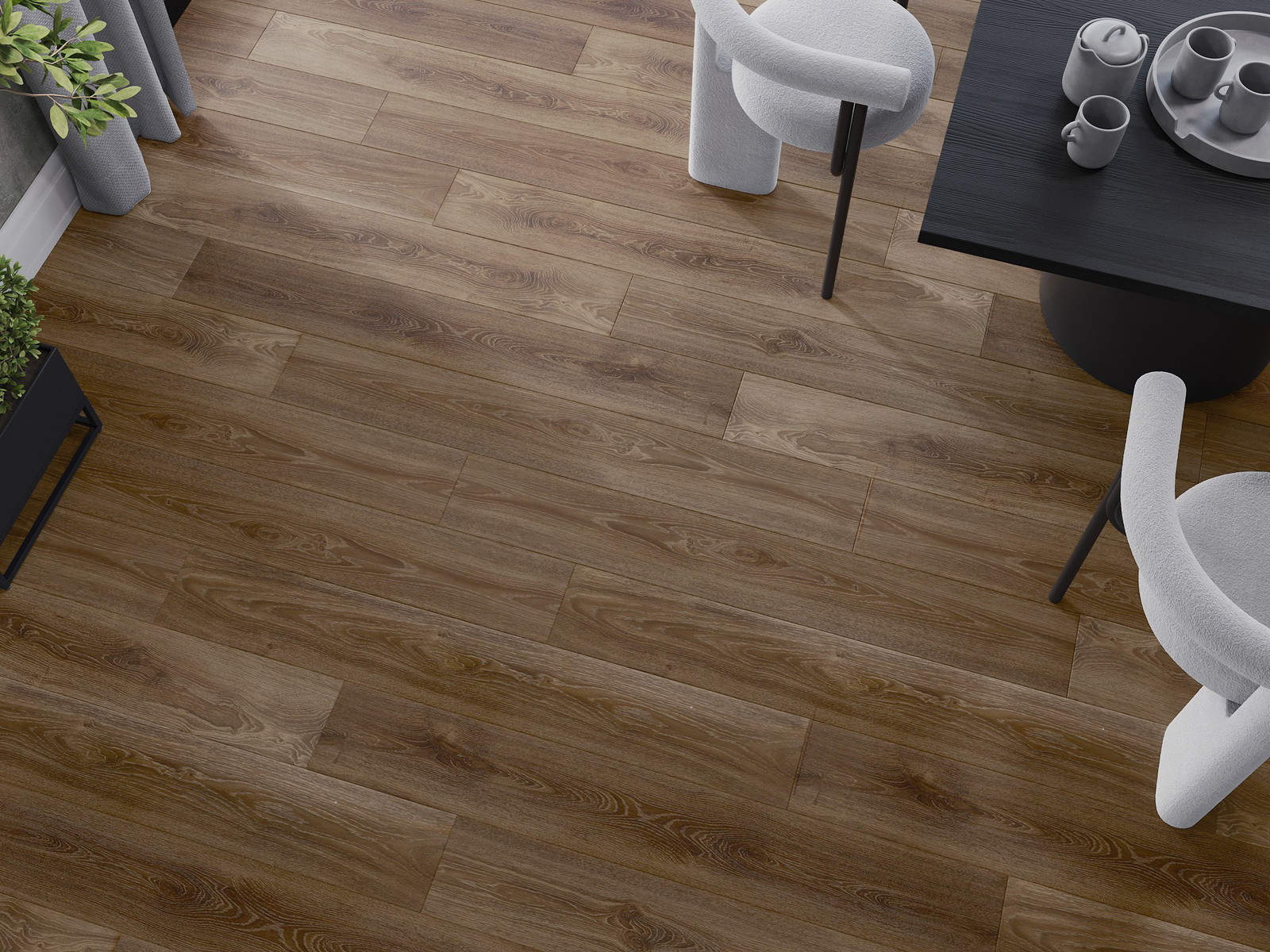 Skydas išsiskiria subtiliais raštais ir įspaudais, kurie puikiai imituoja pasirinktos medienos rūšį. Dėl šio efekto patalpa įgyja elegantišką, o tuo pačiu natūralų ir jaukų pobūdį.