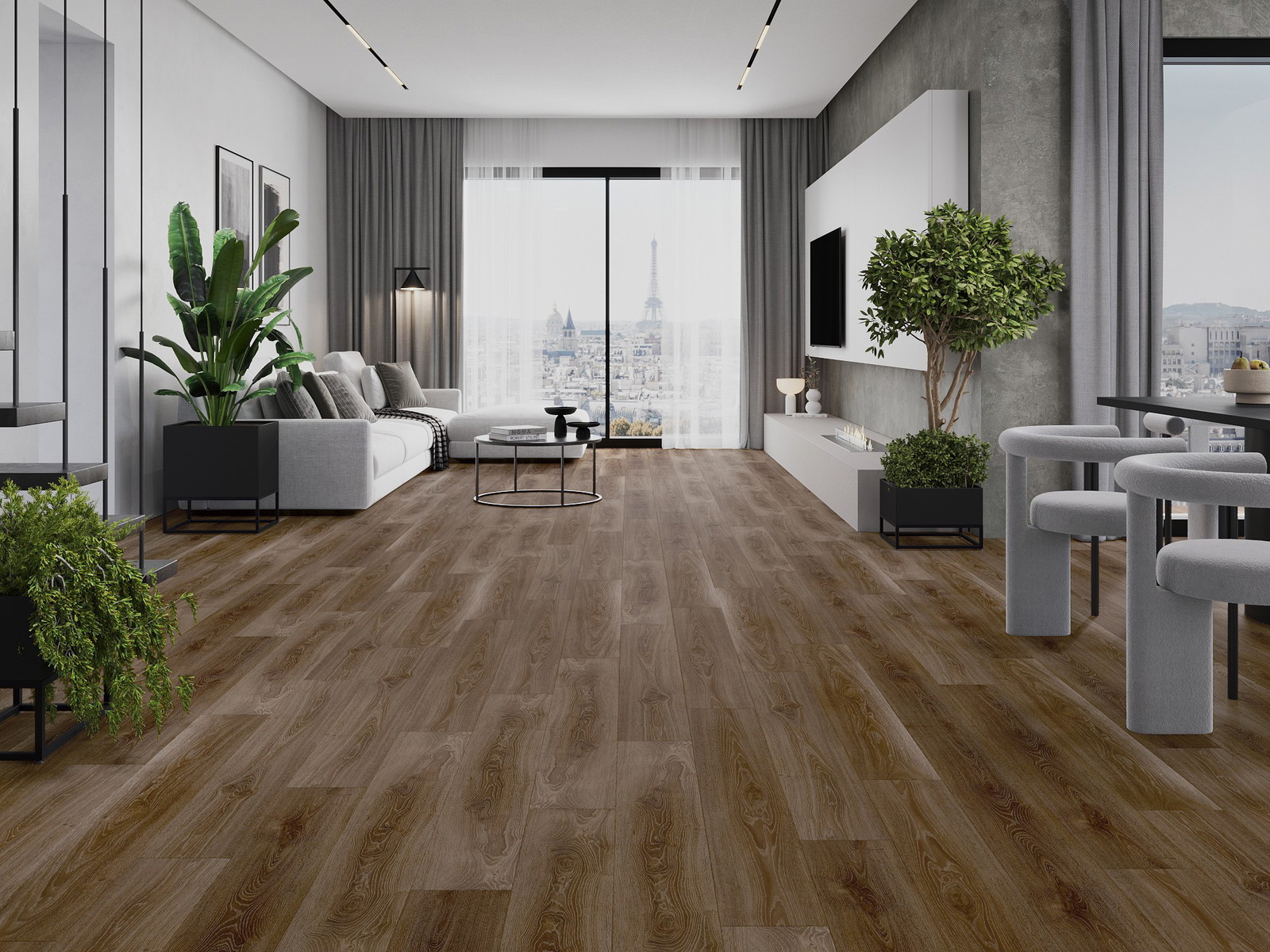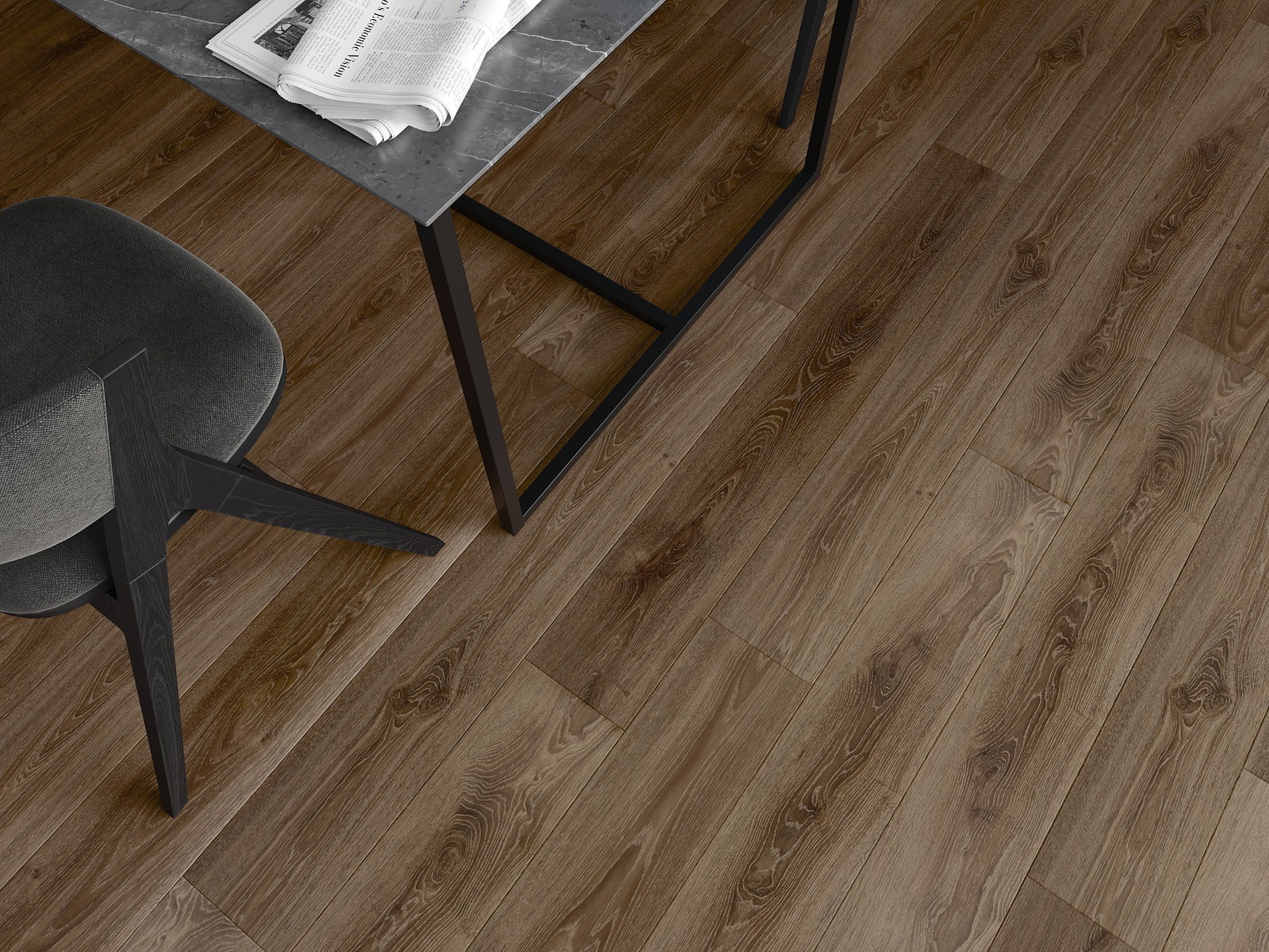 Plokštės turi 4-krypčių griovelį - kiekviena pusė buvo frezuota taip, kad sudarytų V formos jungtį. Toks dizainas suteikia grindims ryškesnę struktūrą, kas suteikia jai gylio ir estetinį charakterį. Šis efektas ypač vertinamas šiuolaikinėse aranžuotėse, kur detalės pabrėžia išskirtinę interjero išvaizdą.