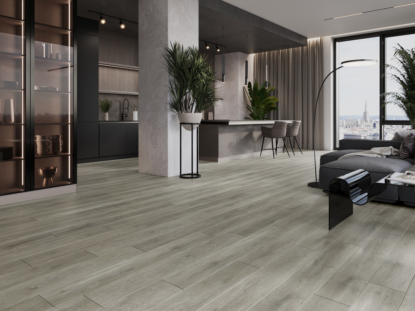 Skydas išsiskiria subtiliais raštais ir įspaudais, kurie puikiai imituoja pasirinktos medienos rūšį. Dėl šio efekto patalpa įgyja elegantišką, o tuo pačiu natūralų ir jaukų pobūdį.