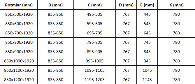 Dušo kabinos, durys ir sienelės yra standartiškai pritaikytos montuoti ant nustatytų matmenų dušo padėklų. Būtent šie matmenys nurodomi gaminio pavadinime arba aprašyme. Tačiau atkreipkite dėmesį, kad faktiniai elementų matmenys gali šiek tiek skirtis nuo vardinių verčių. Planuojant montuoti tiesiai ant grindų, rekomenduojama atidžiai patikrinti išorinius matmenis ir elementų išdėstymą pagal techninį brėžinį.