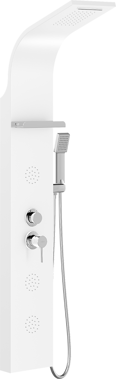 Dušo baterija su kosmetikos lentynėle yra funkcionalus sprendimas, kuris derina naudojimo patogumą su estetika. Lentynėlė leidžia laikyti kosmetiką, muilus, šampūnus ir kitus aksesuarus patogiai pasiekiamus maudynių metu.