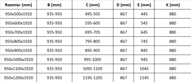 Dydis: 95x120 cm (durys 95 cm, siena 120 cm)