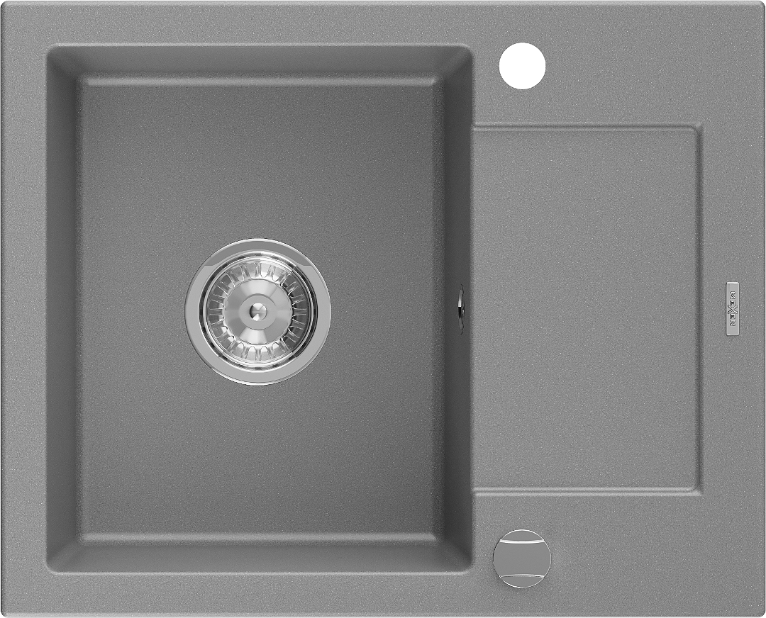 Mexen Enzo granitinis vienos sekcijos plautuvė su lašeliu 576 x 465 mm, pilka, chromo sifonas - 6506571005-71