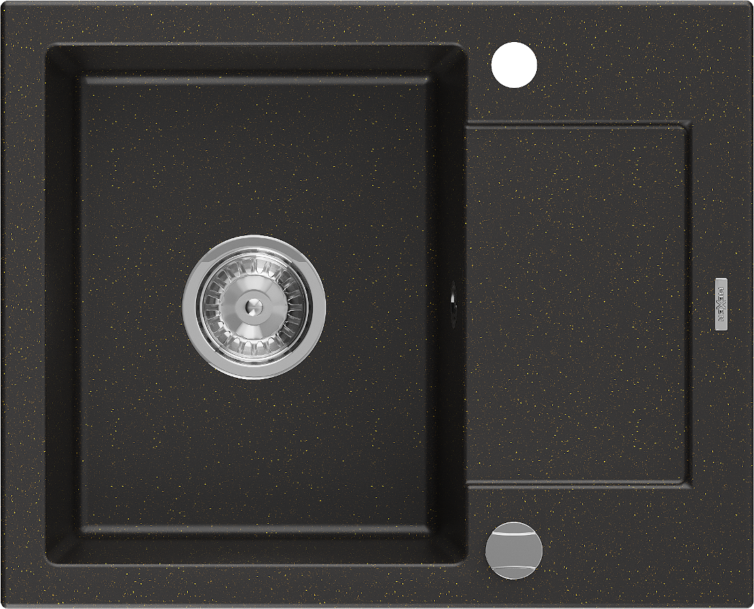 Mexen Enzo granitinė plautuvė su viena kamera ir drenažu 576 x 465 mm, juoda/auksinė metalika, chromuotas sifonas