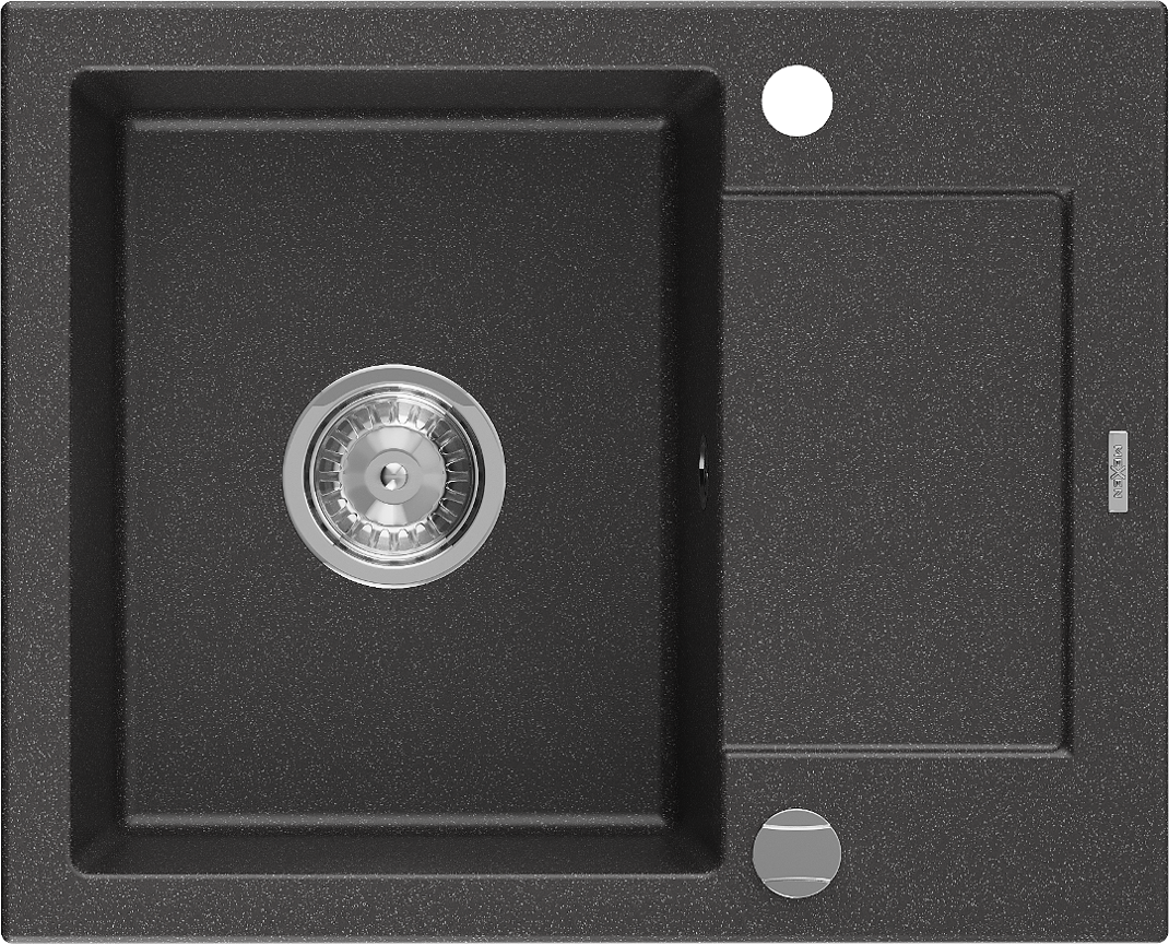 Mexen Enzo granito plautuvė 1 skyrelio su nutekamuoju lenta 576 x 465 mm, juoda taškuota, sifonas chromuotas - 6506571005-76