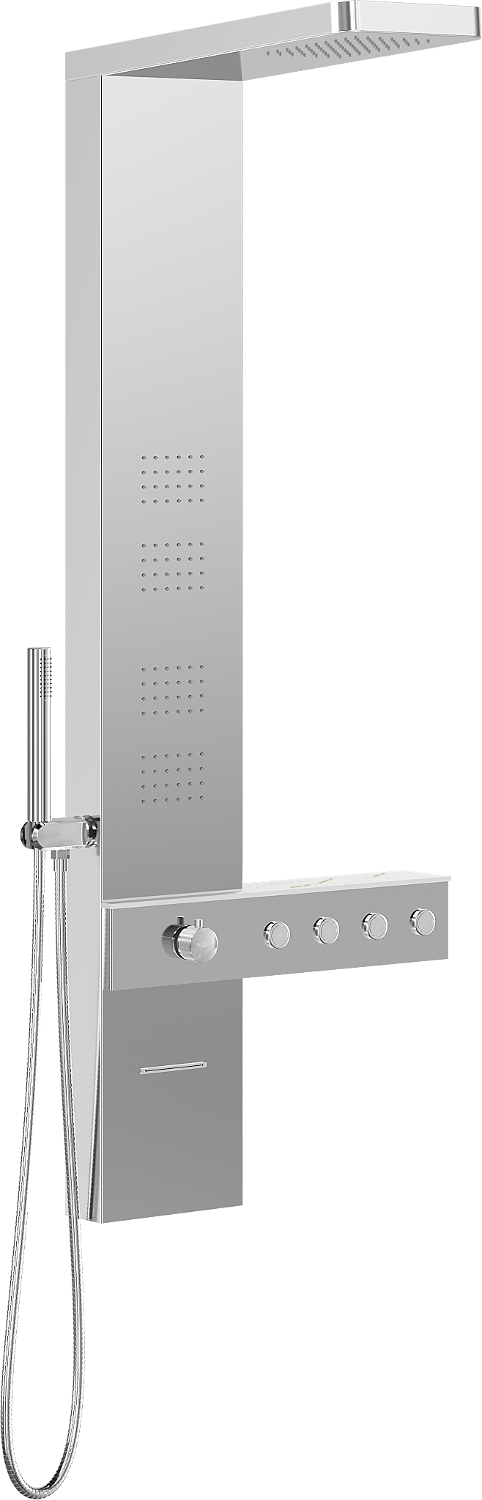 Srovė, kylanti iš dušo galvutės, imituoja natūralų lietų. Ji užtikrina, kad vandens lašai tolygiai kristų ant viso kūno, nuplautų naudojamus kosmetikos produktus ir sumažintų stresą bei raumenų įtampą. Kasdienis poilsis harmonijoje su gamta.