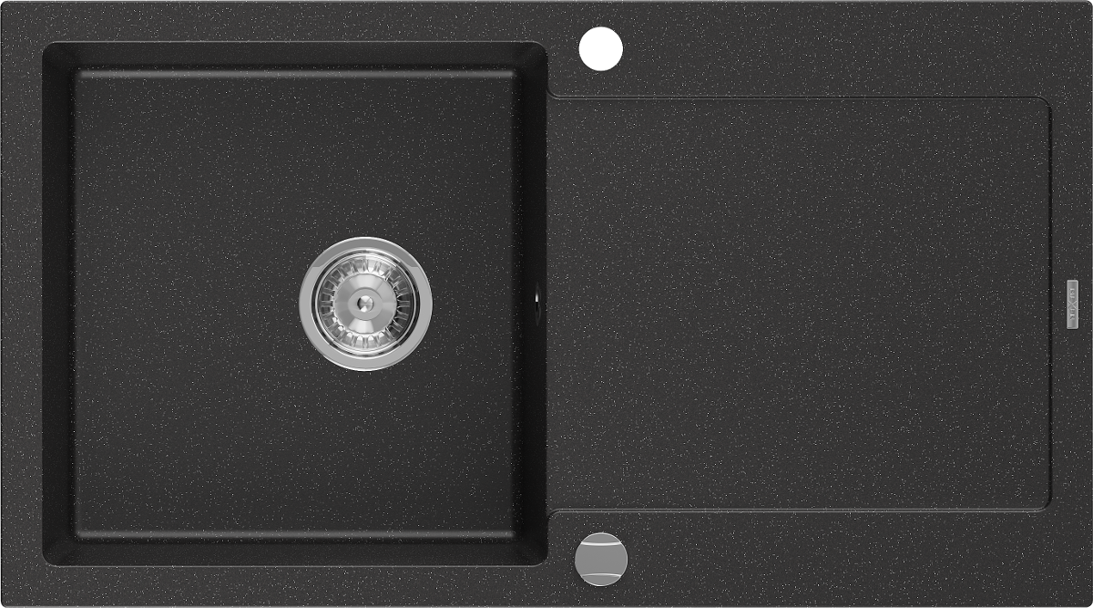 Mexen Leo granitinė vienos kameros kriauklė su nubėgėju 900 x 500 mm, juoda/sidabrinis metalikas, chromuotas sifonas