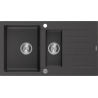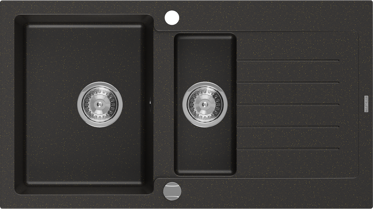 Mexen Matias granitinė 1,5 kamerų kriauklė su nutekėjimu 900 x 505 mm, juoda/auksinė metalinė, chromuotas sifonas