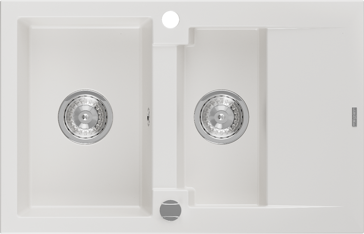 Mexen Gaspar granitinė plautuvė su 1,5 skyriumi ir nusausintuvu 737 x 475 mm, balta, chromuotas sifonas - 6507731505-20