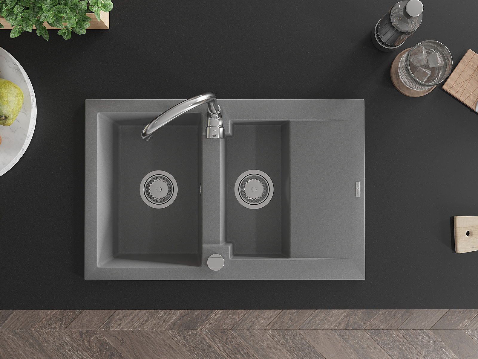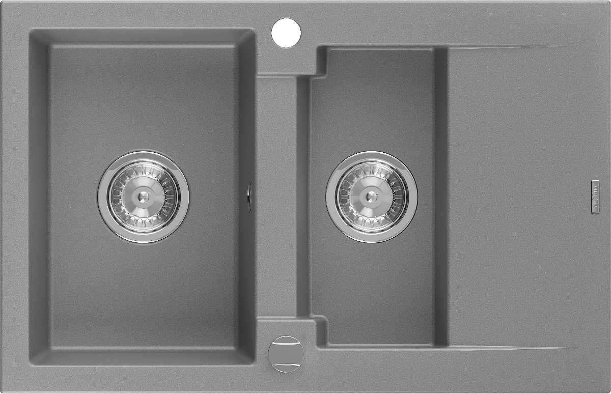 Mexen Gaspar granito kriauklė 1,5 skyrių su nutekamu plotu 737 x 475 mm, pilka, sifonas chromas - 6507731505-71