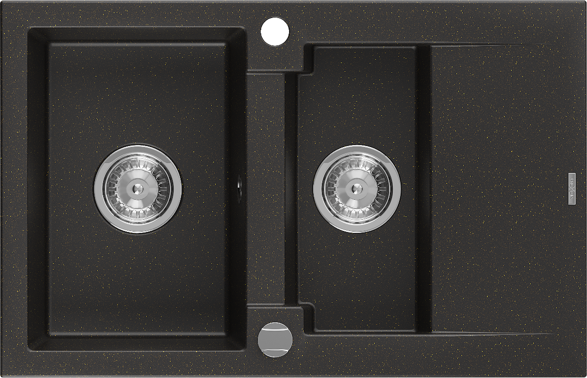 Mexen Gaspar granitinė plautuvė 1,5-skyrių su džiovinimo lentyna 737 x 475 mm, juoda/auksinis metalikas, chromuotas sifonas