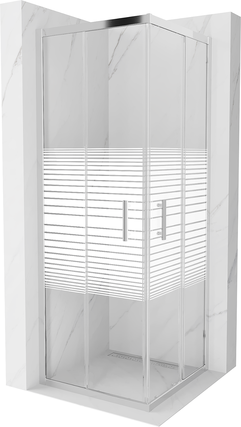 Mexen Rio Kvadratinė dušo kabina 70 x 70 cm, balti dryžiai, chromas - 860-070-070-01-20