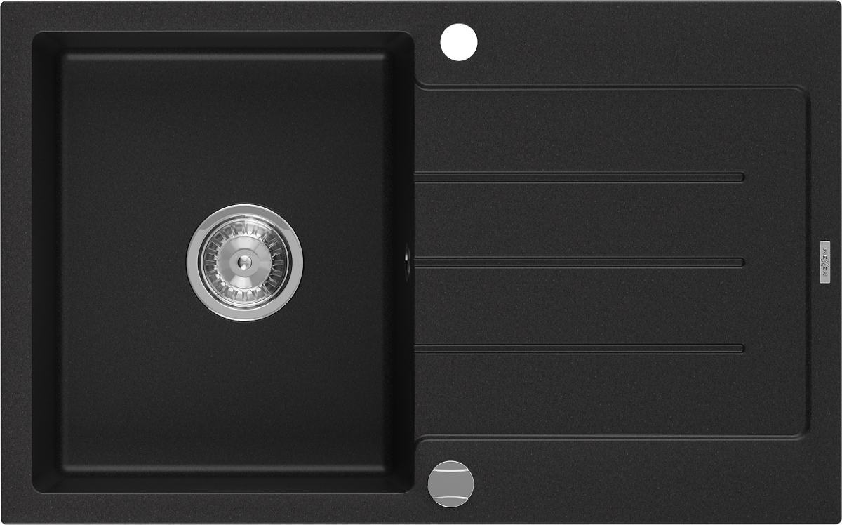 Mexen Bruno granito plautuvė 1 kamerų su nusausintuvu 795 x 495 mm, juoda, sifonas chromas - 6513791010-77
