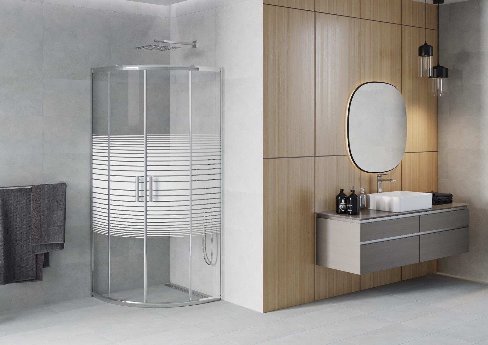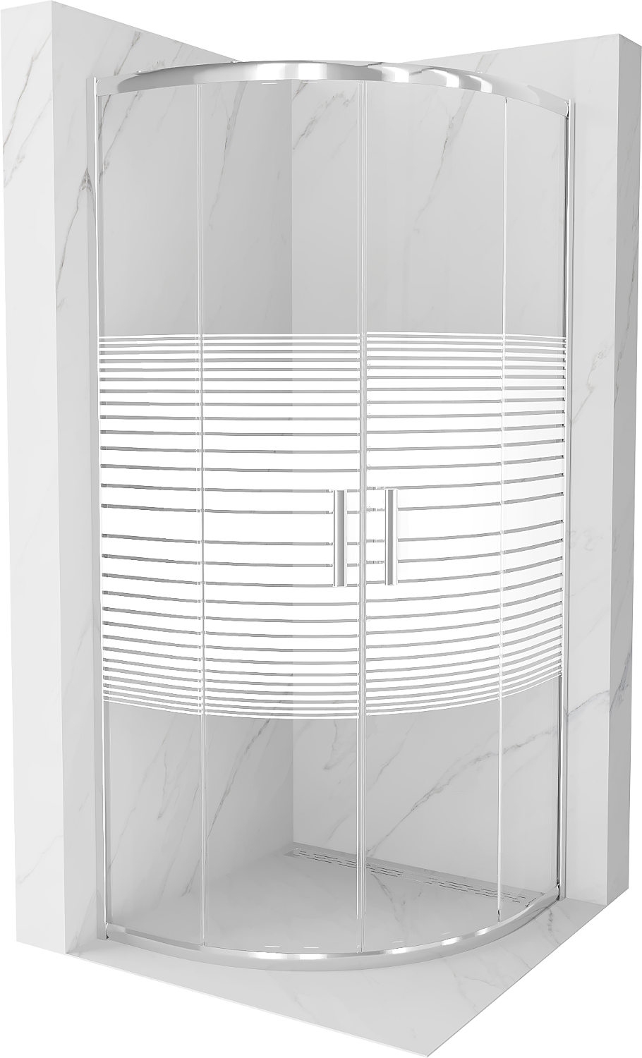Mexen Rio pusapvalė dušo kabina 90 x 90 cm, baltos juostos, chromas - 863-090-090-01-20