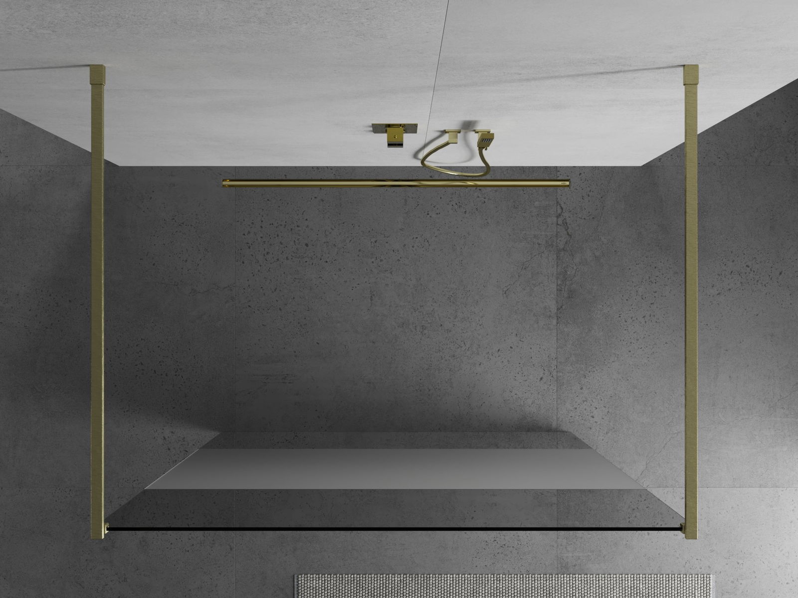 Mexen Kioto laisvai stovinti dušo siena 140 x 200 cm, skaidri/matinė 8 mm, auksinė šlifuota - 800-140-002-55-35