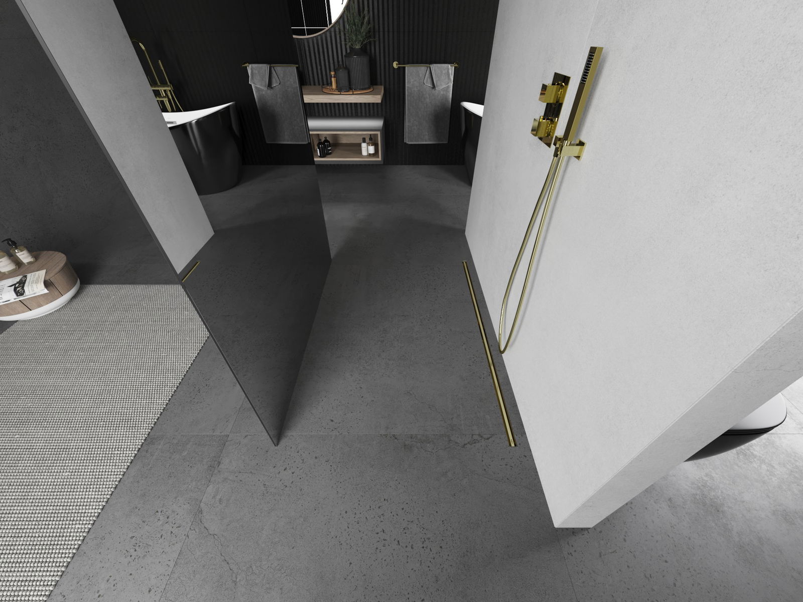 Mexen Kioto laisvai stovinti dušo siena 120 x 200 cm, veidrodis 8 mm, auksinis šlifuotas - 800-120-002-55-50
