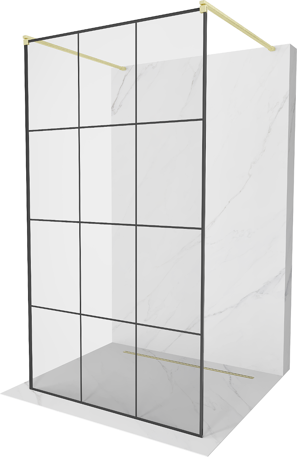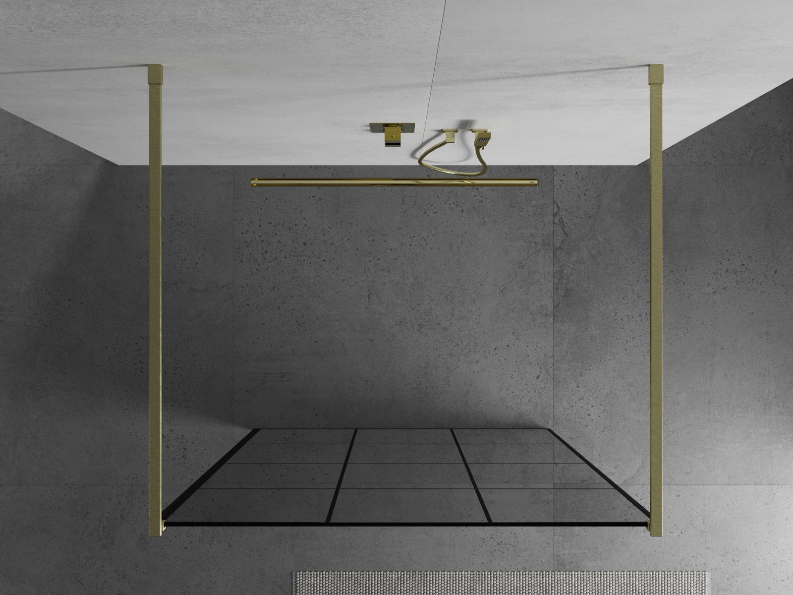 Mexen Kioto laisvai stovinti dušo sienelė 100 x 200 cm, juodas tinklelis 8 mm, auksinė šlifuota - 800-100-002-55-77