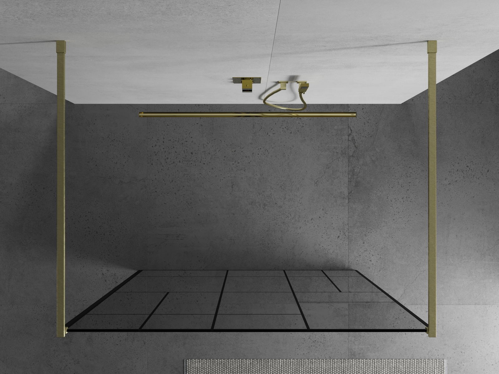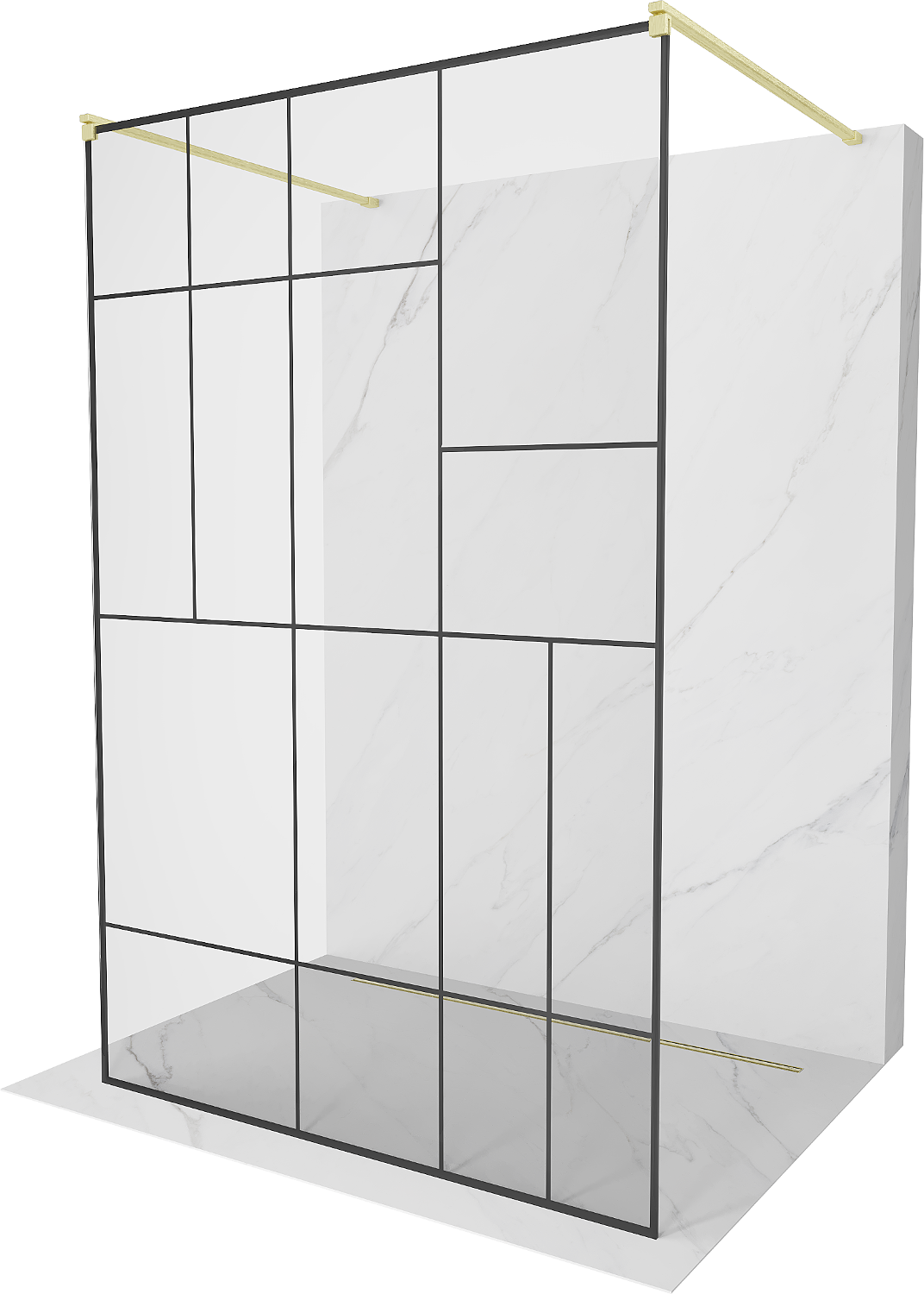 Mexen Kioto laisvai stovinti dušo siena 100 x 200 cm, juodas raštas 8 mm, auksinis šepečiuotas - 800-100-002-55-78