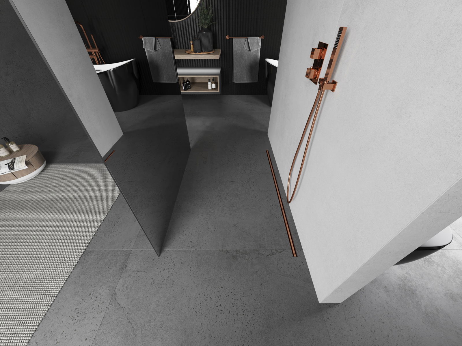 Mexen Kioto laisvai stovinti dušo sienelė 140 x 200 cm, veidrodis 8 mm, šlifuotas varis - 800-140-002-65-50