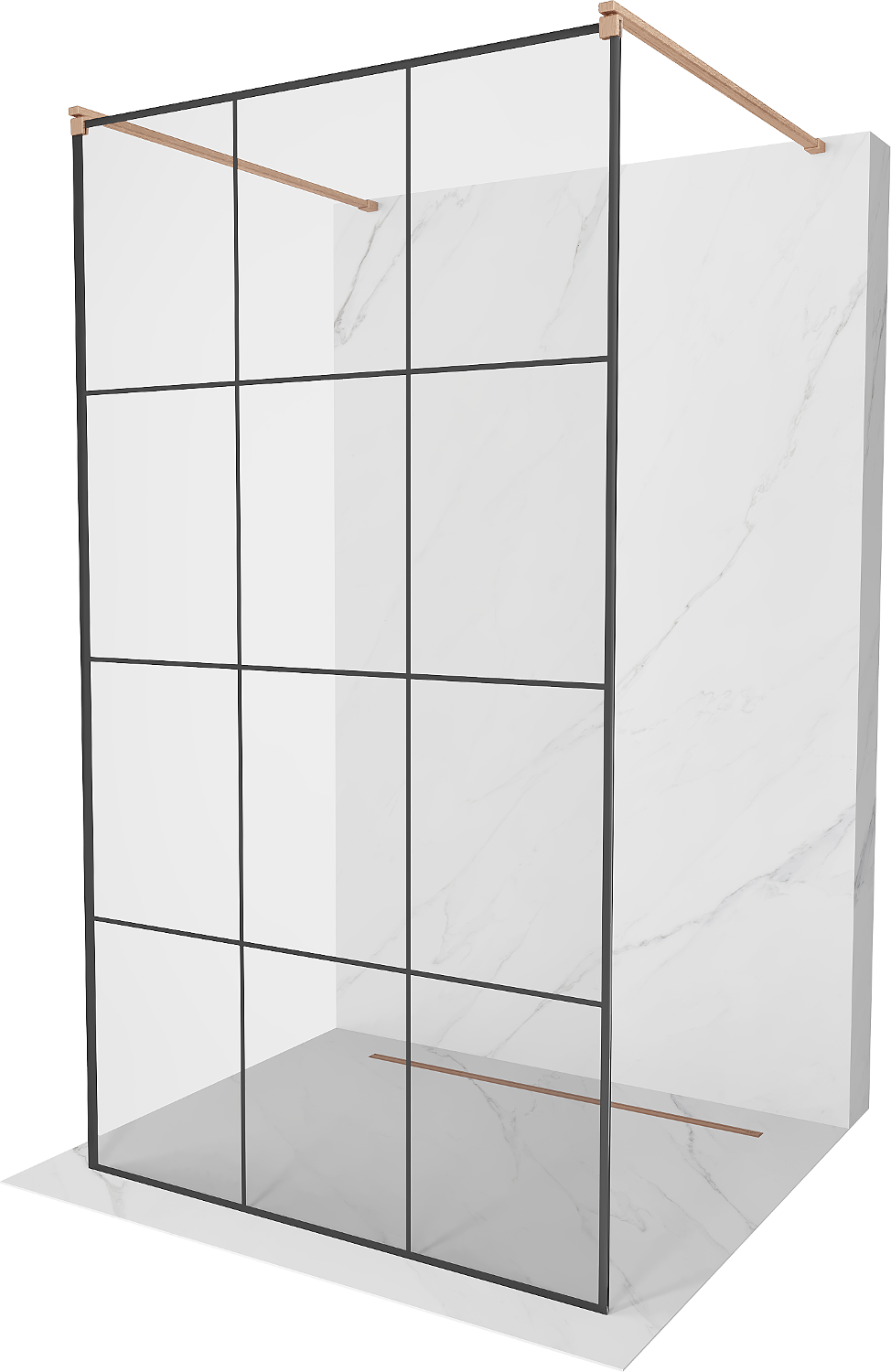 Mexen Kioto laisvai stovinti dušo sienelė 100 x 200 cm, juodi tinkleliai 8 mm, šlifuota varis - 800-100-002-65-77