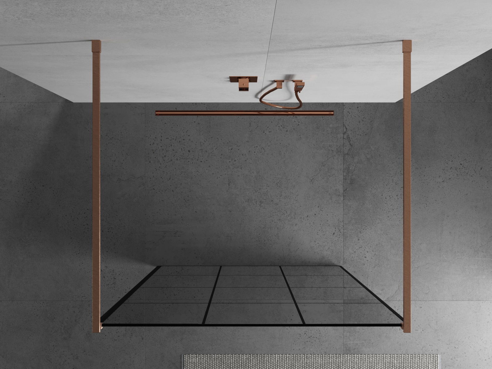 Mexen Kioto Laisvai stovinti dušo siena 110 x 200 cm, juodas tinklelis 8 mm, šepečiu valyta varis - 800-110-002-65-77