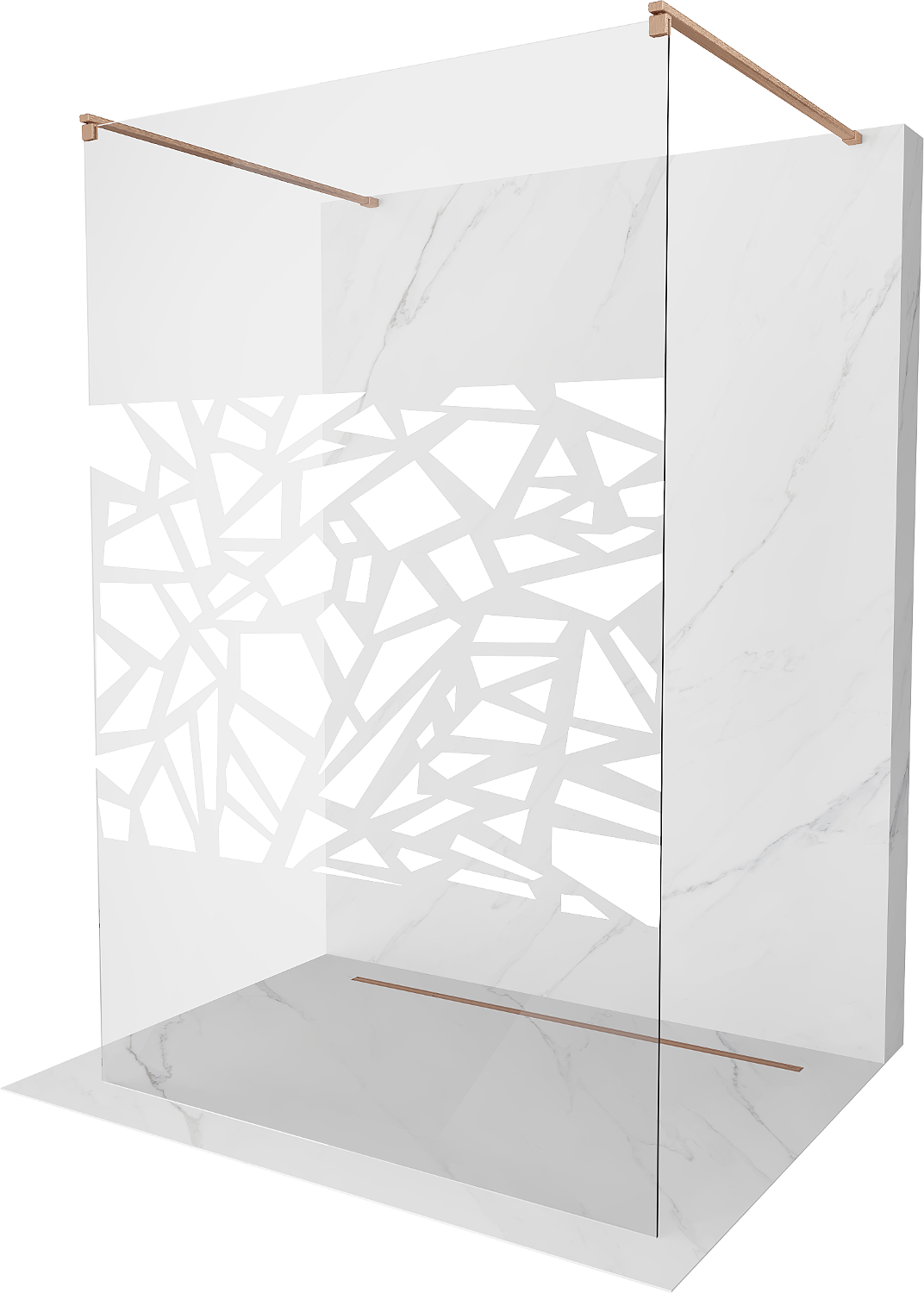 Mexen Kioto laisvai stovinti dušo siena 110 x 200 cm, baltas raštas 8 mm, šlifuota varis - 800-110-002-65-85