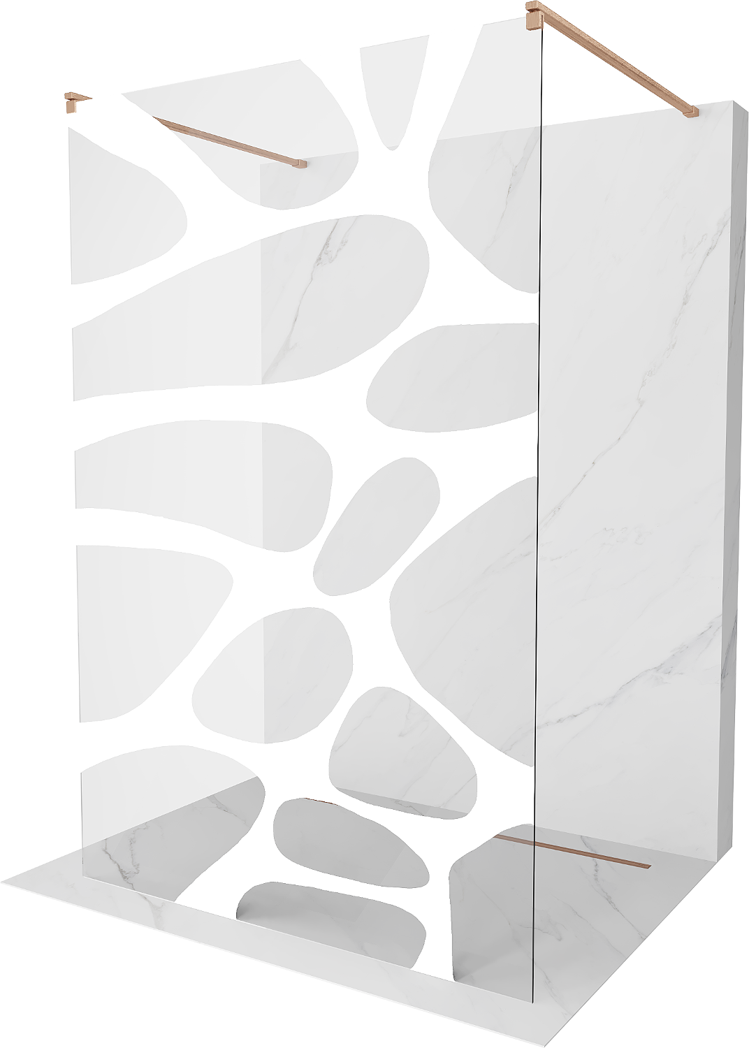 Mexen Kioto laisvai stovinti dušo sienelė 110 x 200 cm, balta banga 8 mm, šlifuotas varis - 800-110-002-65-97