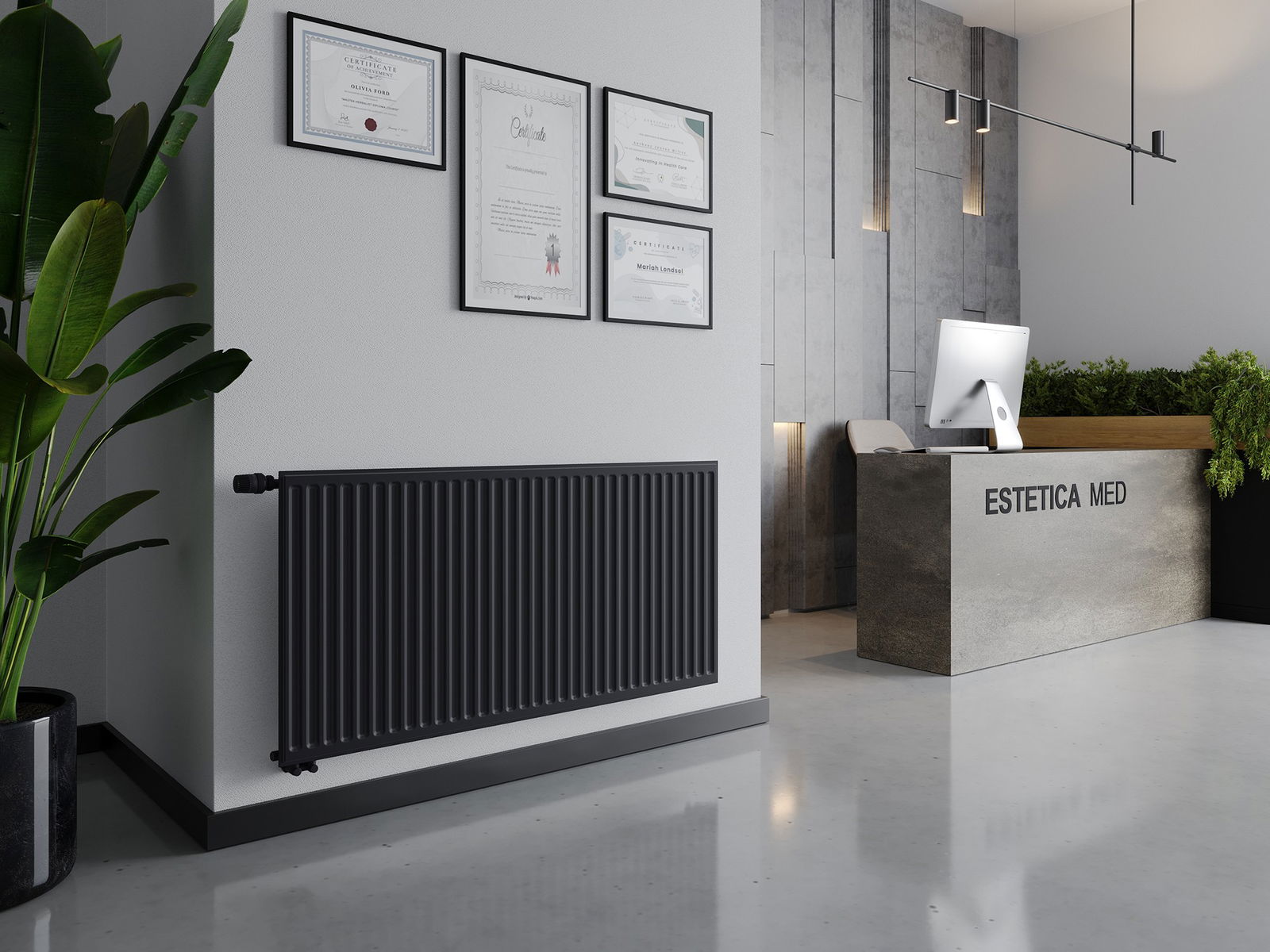 Naudojant modernias technologijas, radiatorius greitai įkaista, o jo skydinė konstrukcija užtikrina efektyvų ir tolygų šilumos paskirstymą visame kambaryje, kas padidina naudojimo komfortą.