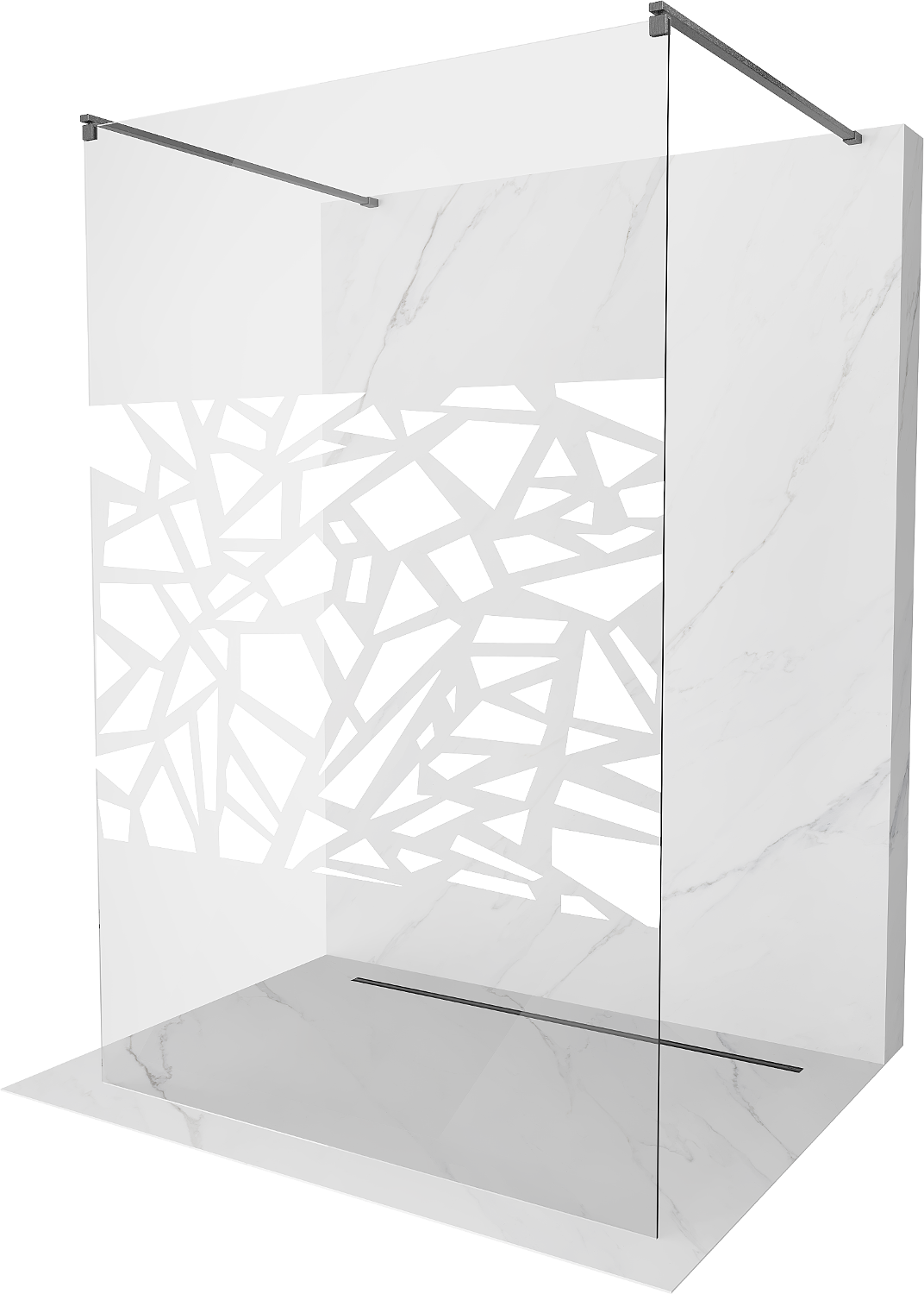 Mexen Kioto laisvai stovinti dušo pertvara 130 x 200 cm, baltas raštas 8 mm, gun gray šlifuota - 800-130-002-66-85