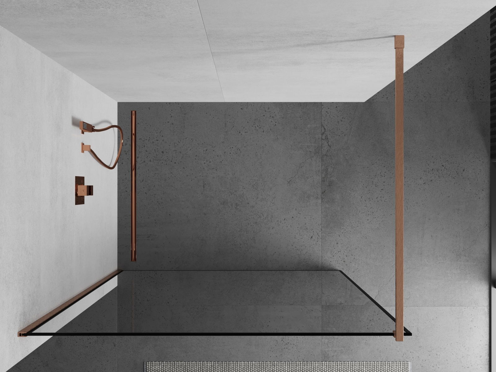 Mexen Kioto Dušo siena Walk-in 150 x 200 cm, juodas rėmas 8 mm, šlifuotas varis - 800-150-101-65-70