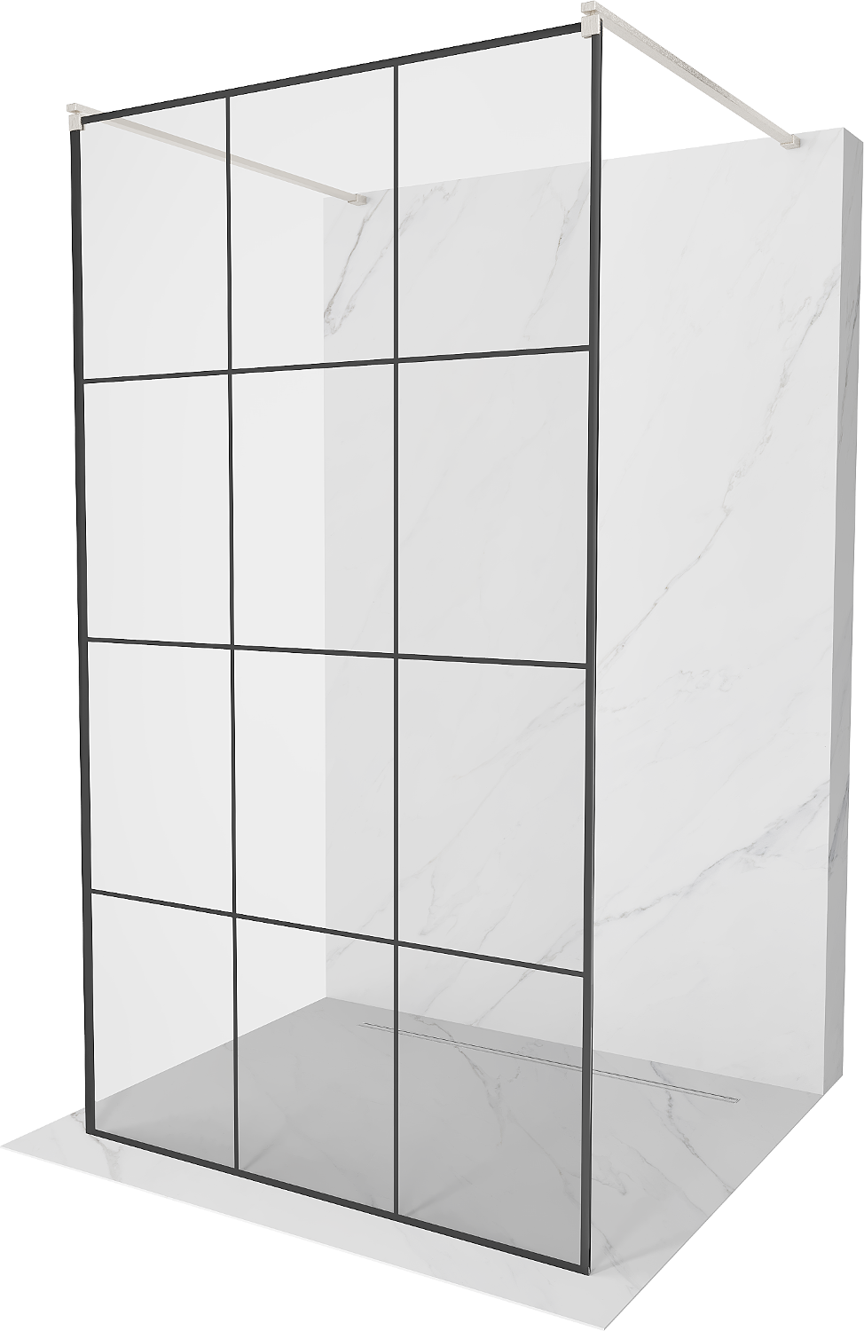 Mexen Kioto laisvai stovinti dušo sienelė 120 x 200 cm, juodas tinklelis 8 mm, šlifuotas nikelis - 800-120-002-97-77