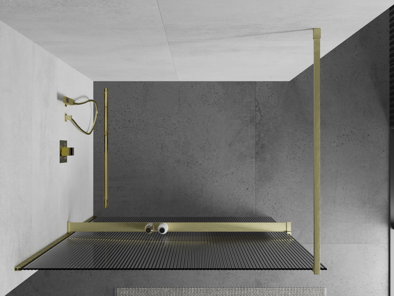 Mexen Kioto+ dušo siena su lentyna Walk-in 90 x 200 cm, juostelės, matinė auksinė - 800-090-121-55-09