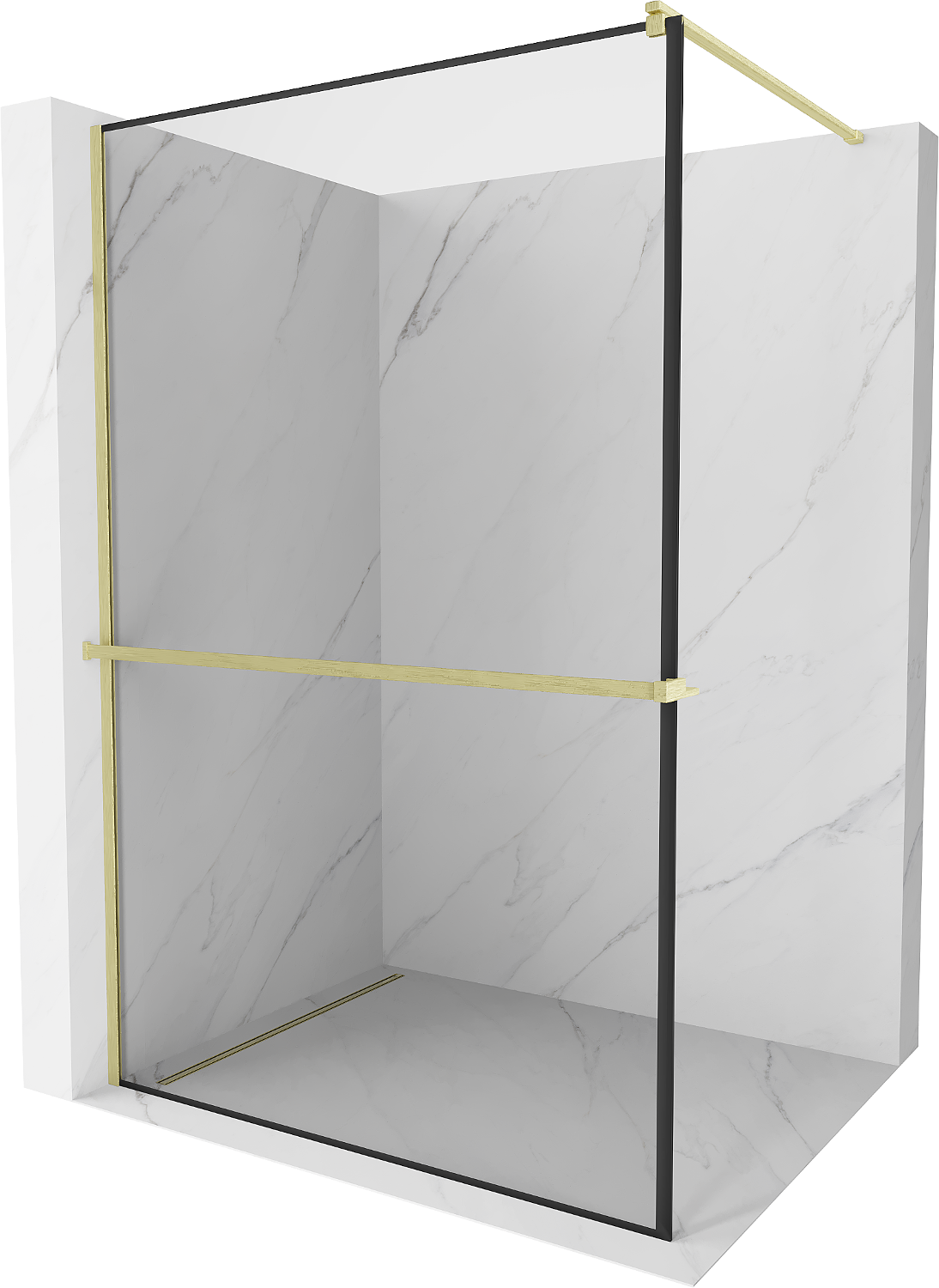 Mexen Kioto+ dušo sienelė su lentele Walk-in 80 x 200 cm, juodas rėmelis, auksinis šepečiu - 800-080-121-55-70