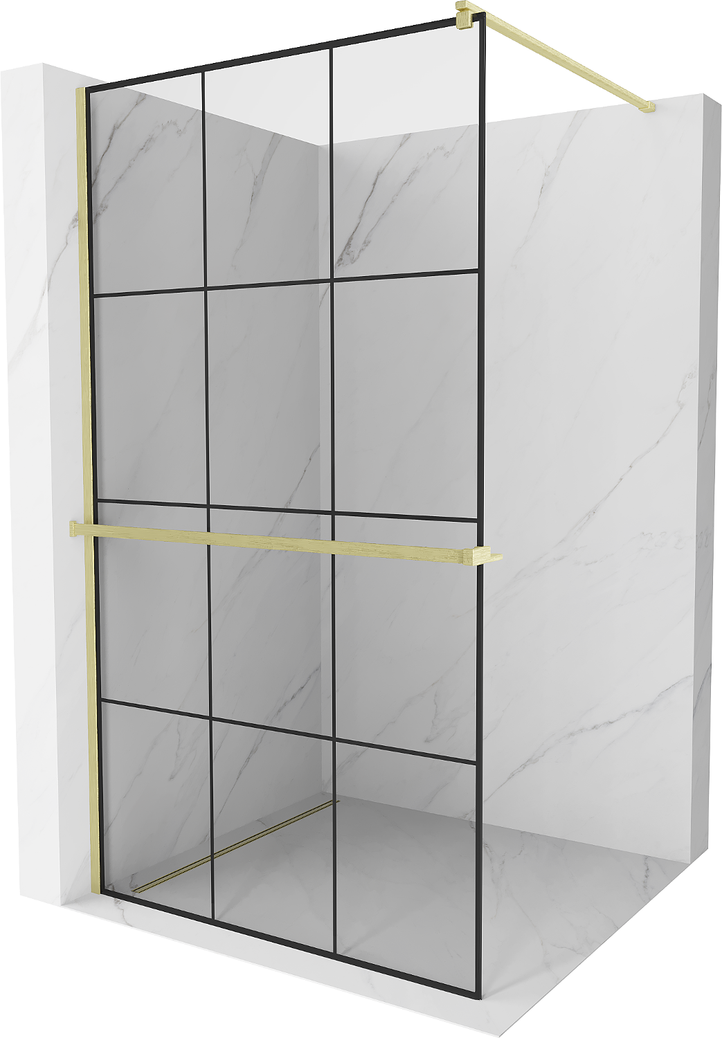 Mexen Kioto+ dušo siena su lentyna Walk-in 110 x 200 cm, juoda grotelė, auksinė šlifuota - 800-110-121-55-77