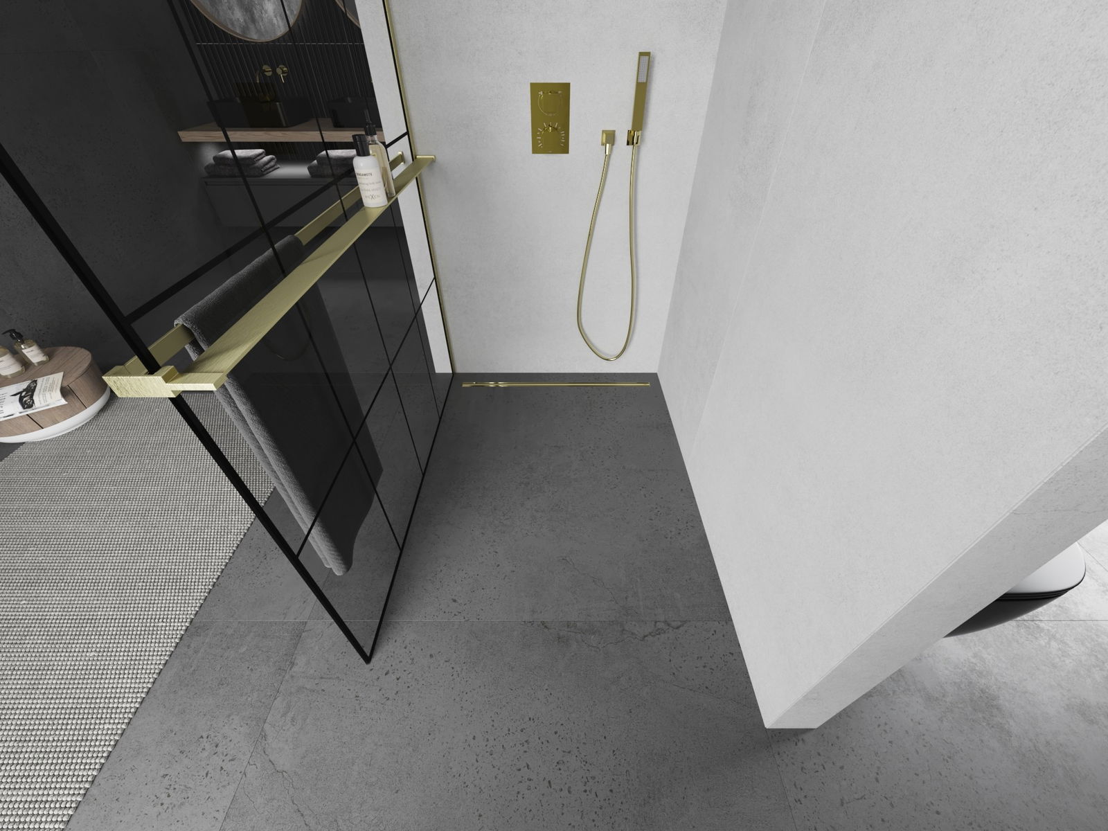 Mexen Kioto+ dušo siena su lentyna Walk-in 130 x 200 cm, juodas tinklelis, auksinis šukuotas - 800-130-121-55-77