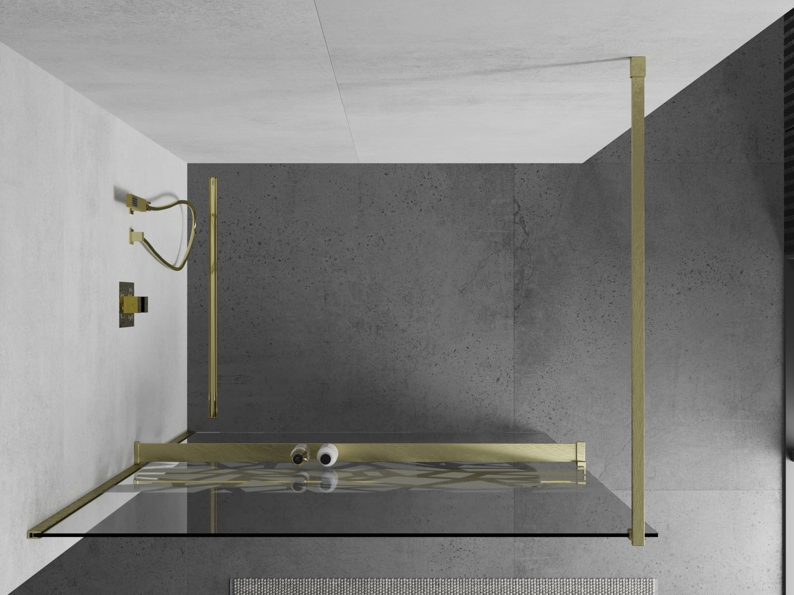 Mexen Kioto+ dušo siena su lentyna Walk-in 110 x 200 cm, baltas raštas, aukso matinė - 800-110-121-55-85