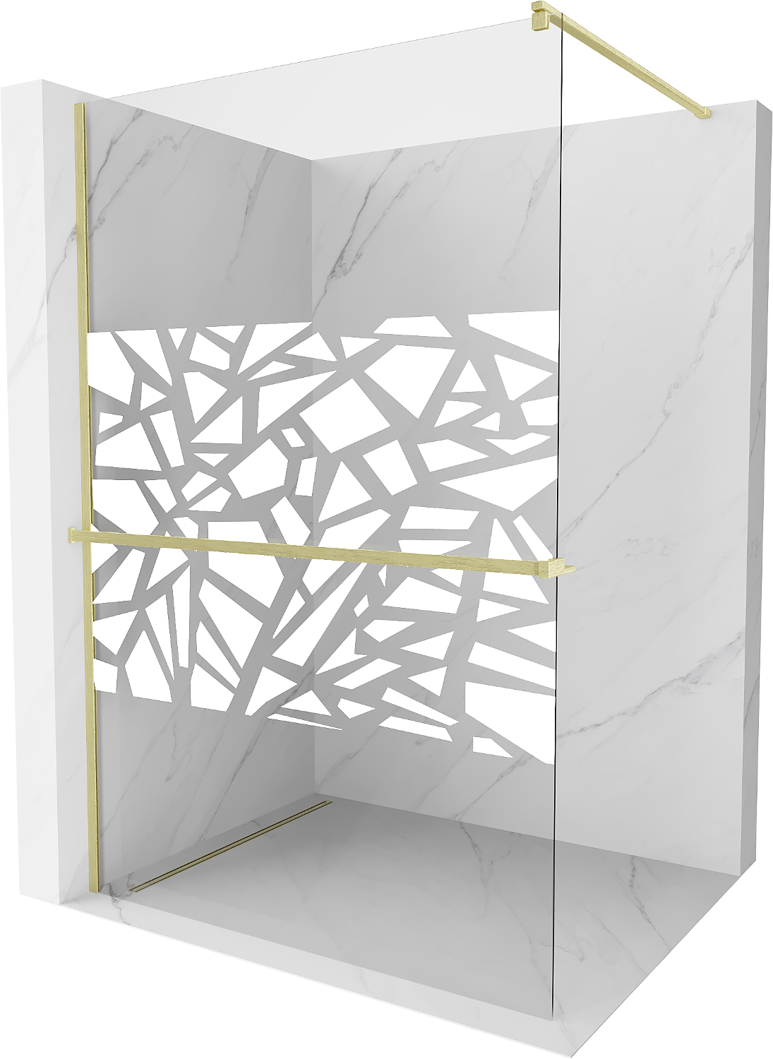 Mexen Kioto+ dušo sienelė su lentyna Walk-in 120 x 200 cm, baltas raštas, auksinė šlifuota - 800-120-121-55-85