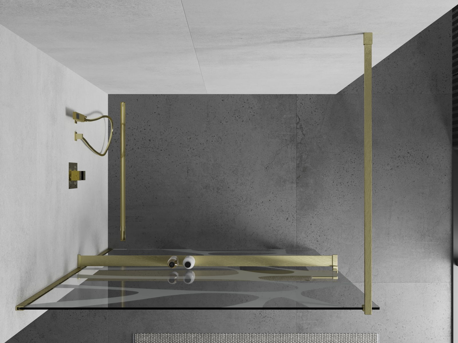 Mexen Kioto+ dušo sienelė su lentyna Walk-in 120 x 200 cm, balta banga, auksinė matinta - 800-120-121-55-97